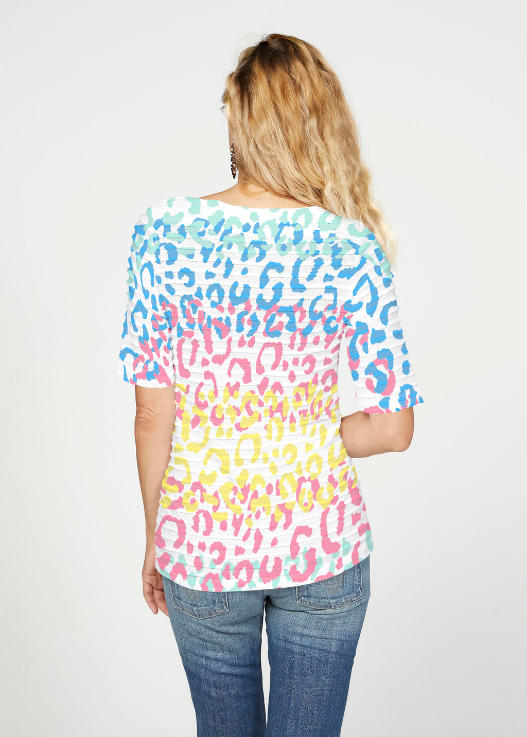 Leopard Ombre Rainbow (7899) ~ Banded Elbow Sleeve Boat Neck Top