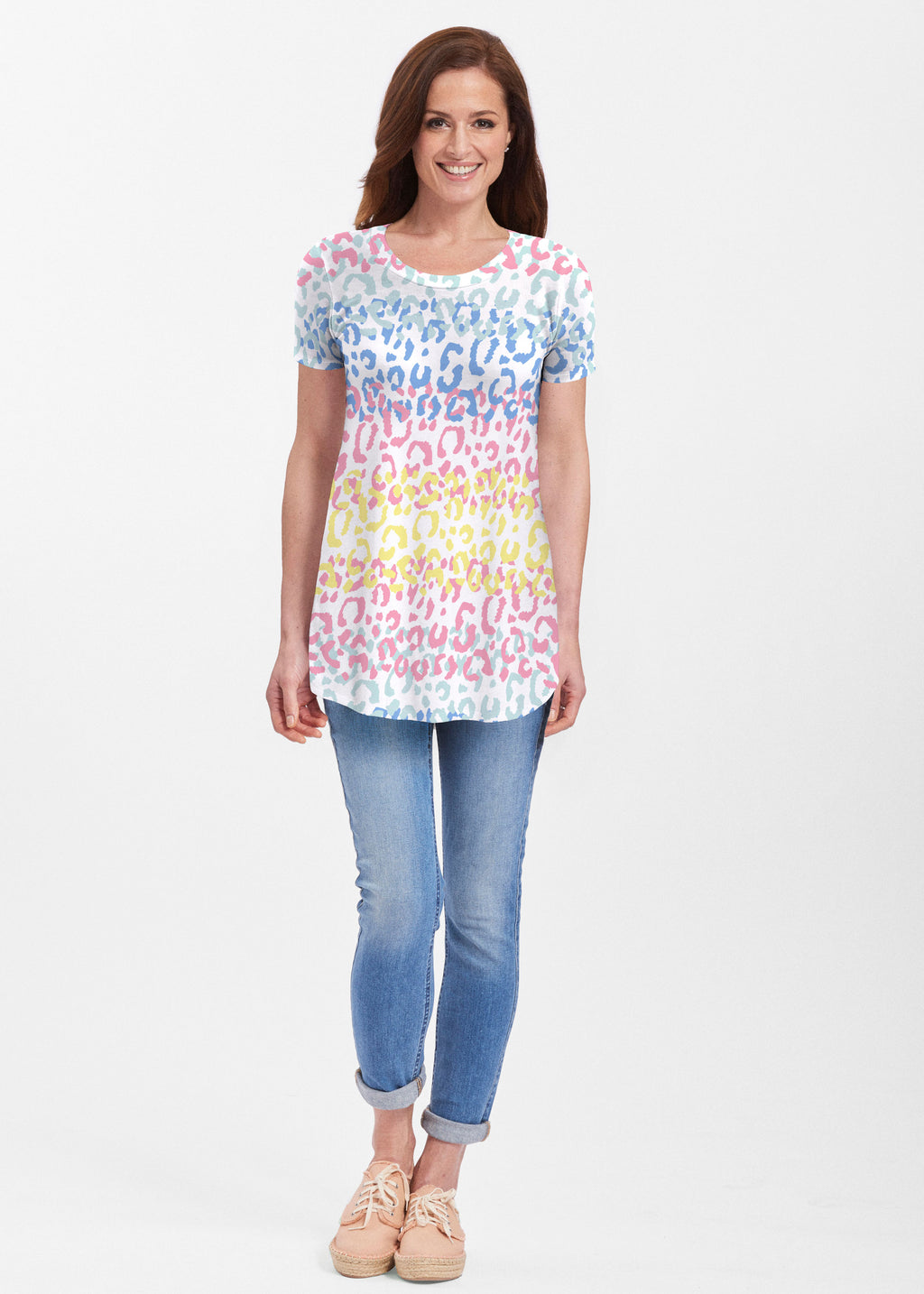 A fun and flirty leopard print with ombre colors in pink, aqua, blue and yellow. Go wild for this print! Designed by Susan Werner.