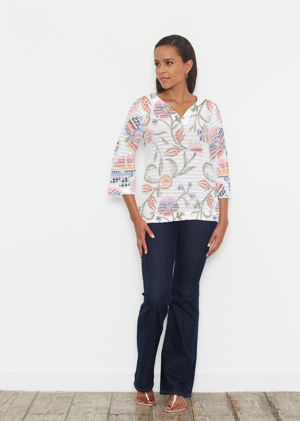 Bali Batik (26003) ~ Banded 3/4 Bell-Sleeve V-Neck Tunic