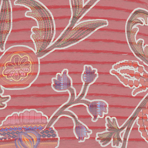 A playful floral print with a blue background and bold floral sleeves designed by Susan Werner.