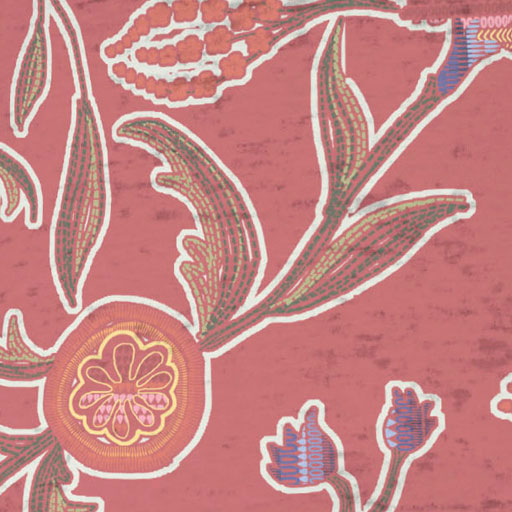 A playful floral print with a blue background and bold floral sleeves designed by Susan Werner.