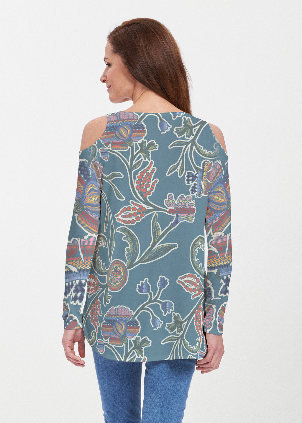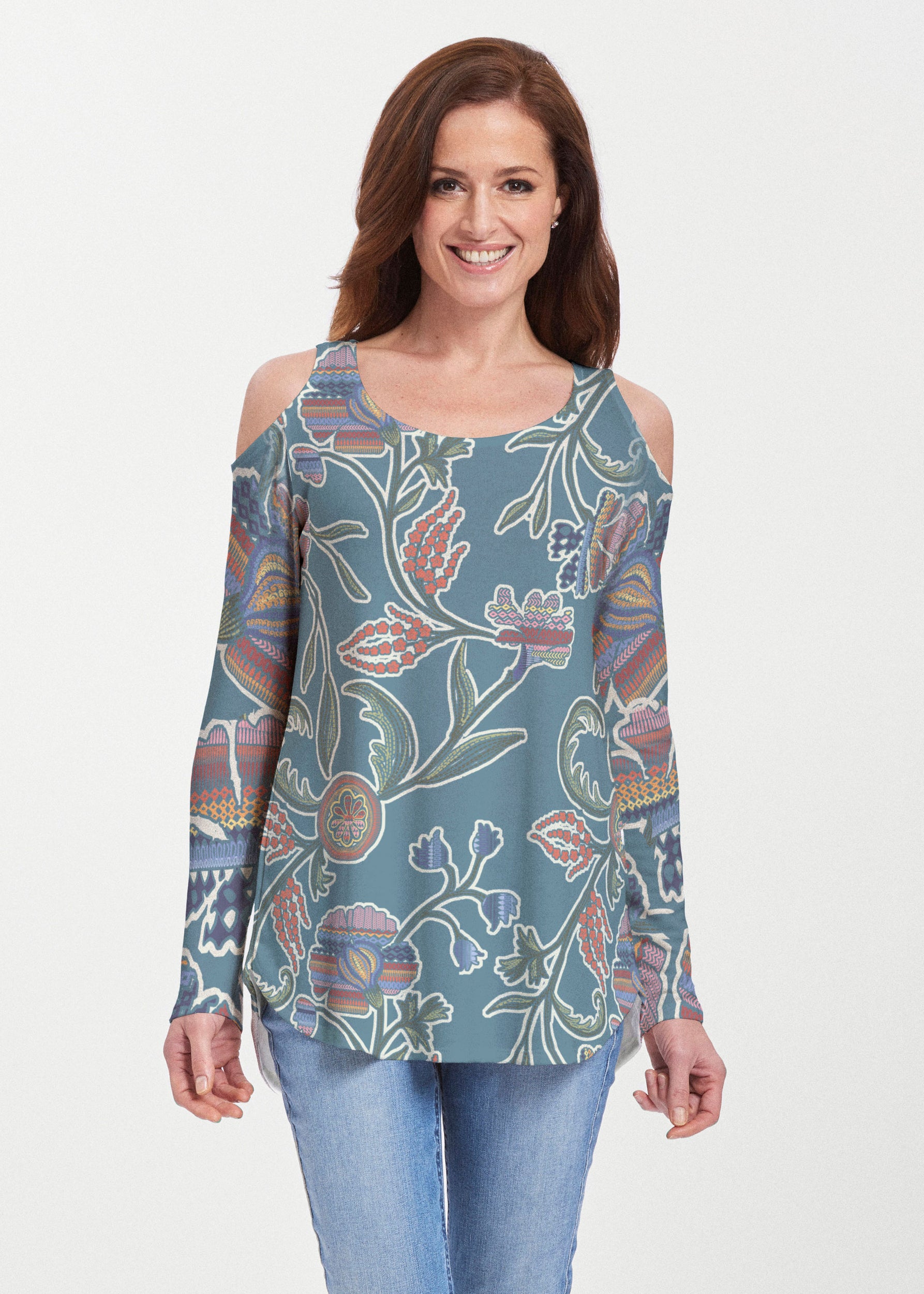Cat Blue (7755) ~ Butterknit Cold Shoulder Tunic