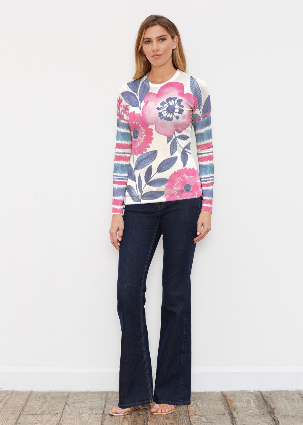 Watercolor Blooms (13355) ~ Butterknit Long Sleeve Crew Top