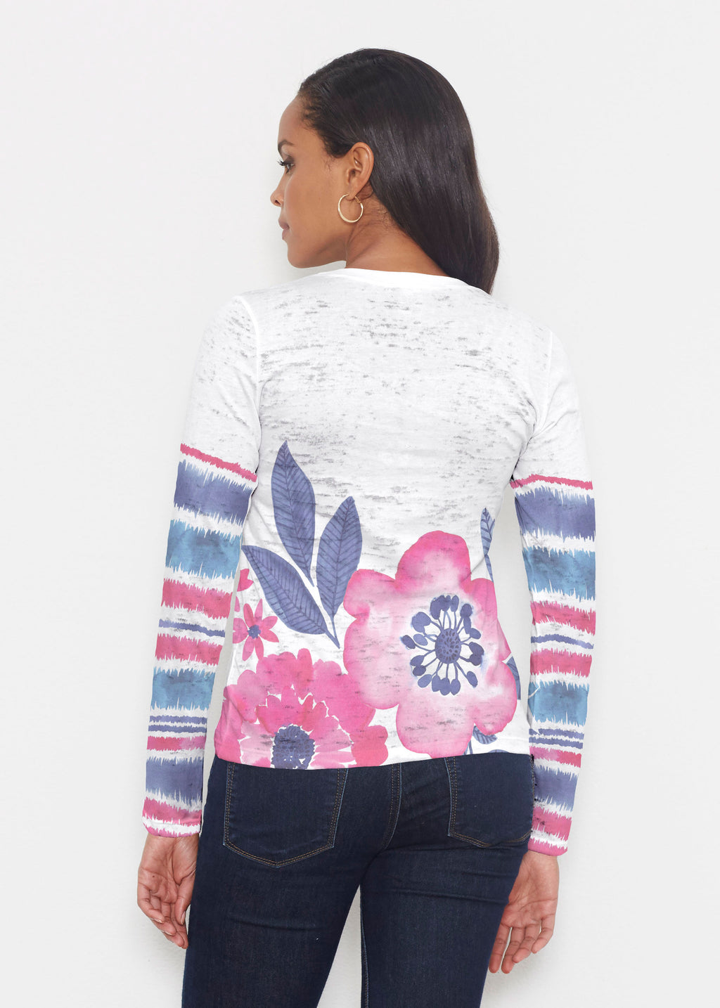 Our popular long sleeve tee is casual and fun in our Signature lightweight burn-out blend. This tee features a relaxed fit, crew neck, and long sleeves.