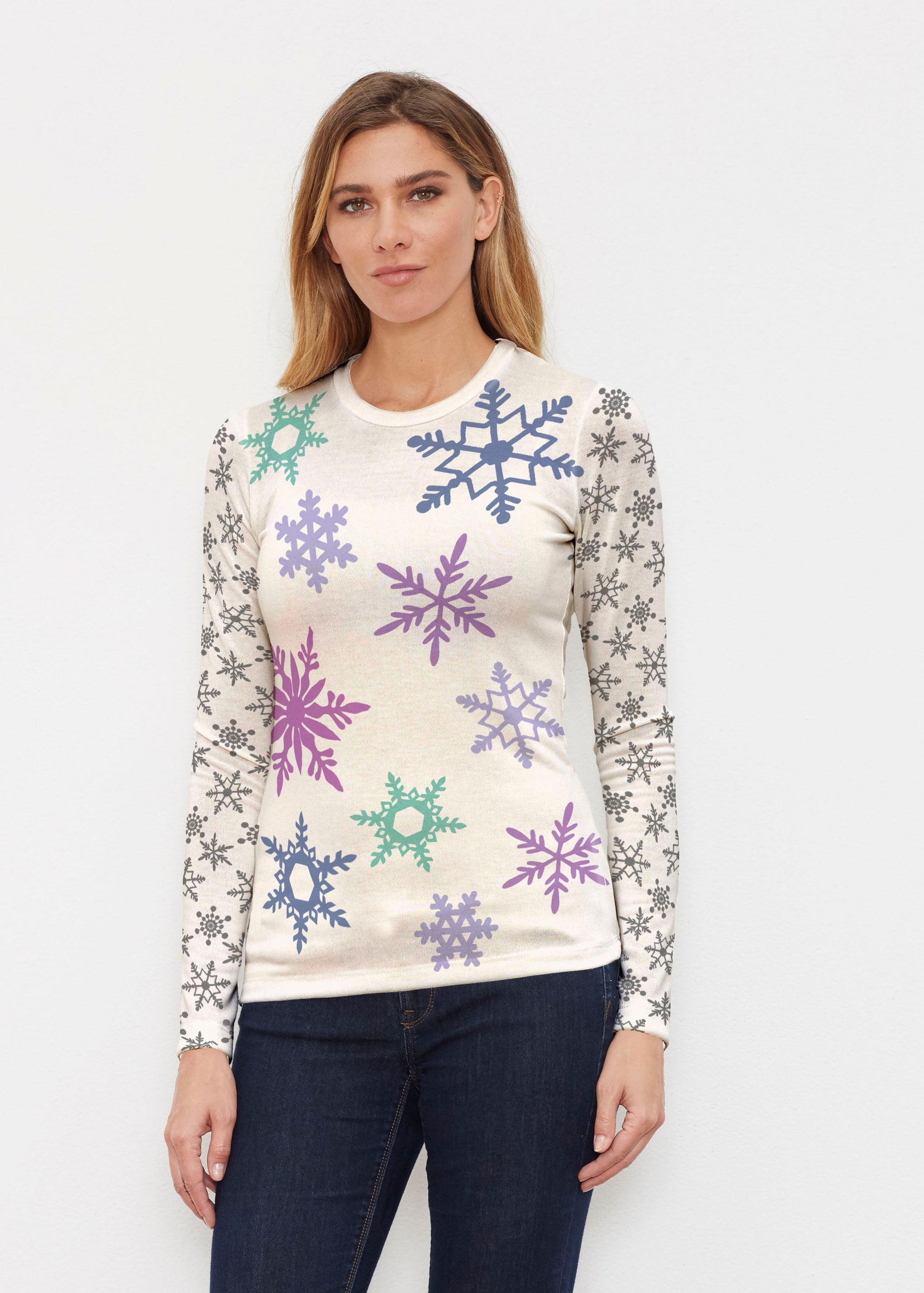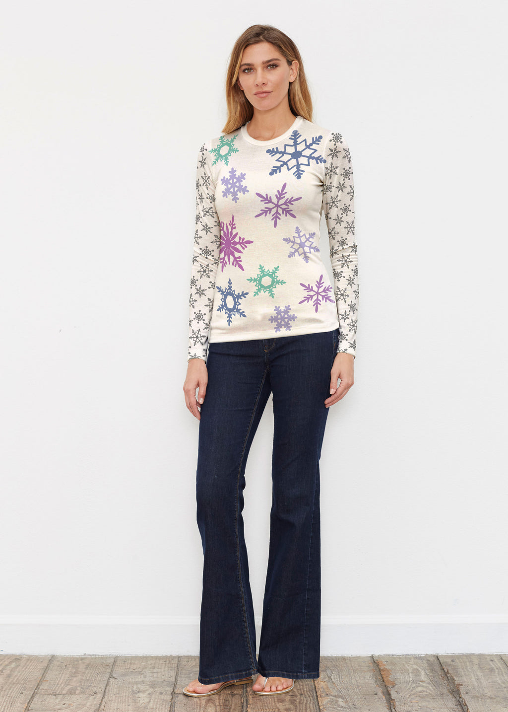 Snowflakes + Cream (2629) ~ Butterknit Long Sleeve Crew Top