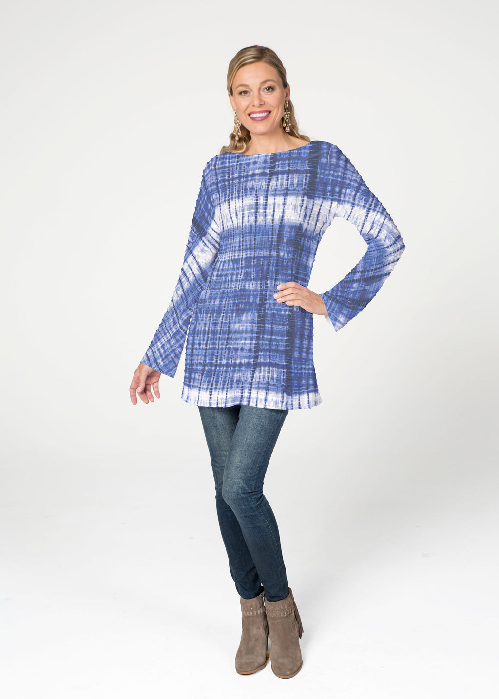 The Banded Boatneck Tunic has the soft pleated texture of our Banded fabric, making this a sophisticated, casual year round piece. A forgiving fit, side vents, with a relaxed full length sleeve combine for a flattering look. The hemline flows gently over the hip.