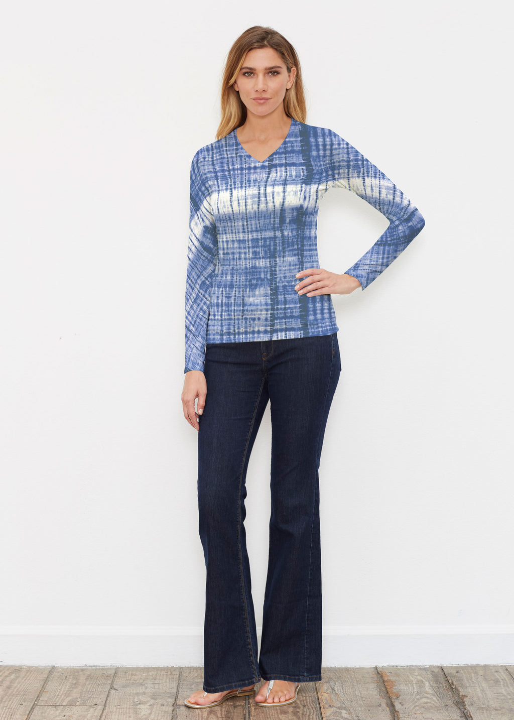 Polished and elegant, this top is a sophisticated option for chillier temps. Our soft and cozy Butterknit fabric, long sleeves, fitted shape, and v- neck make the perfect comfortable and stylish look in your favorite print.