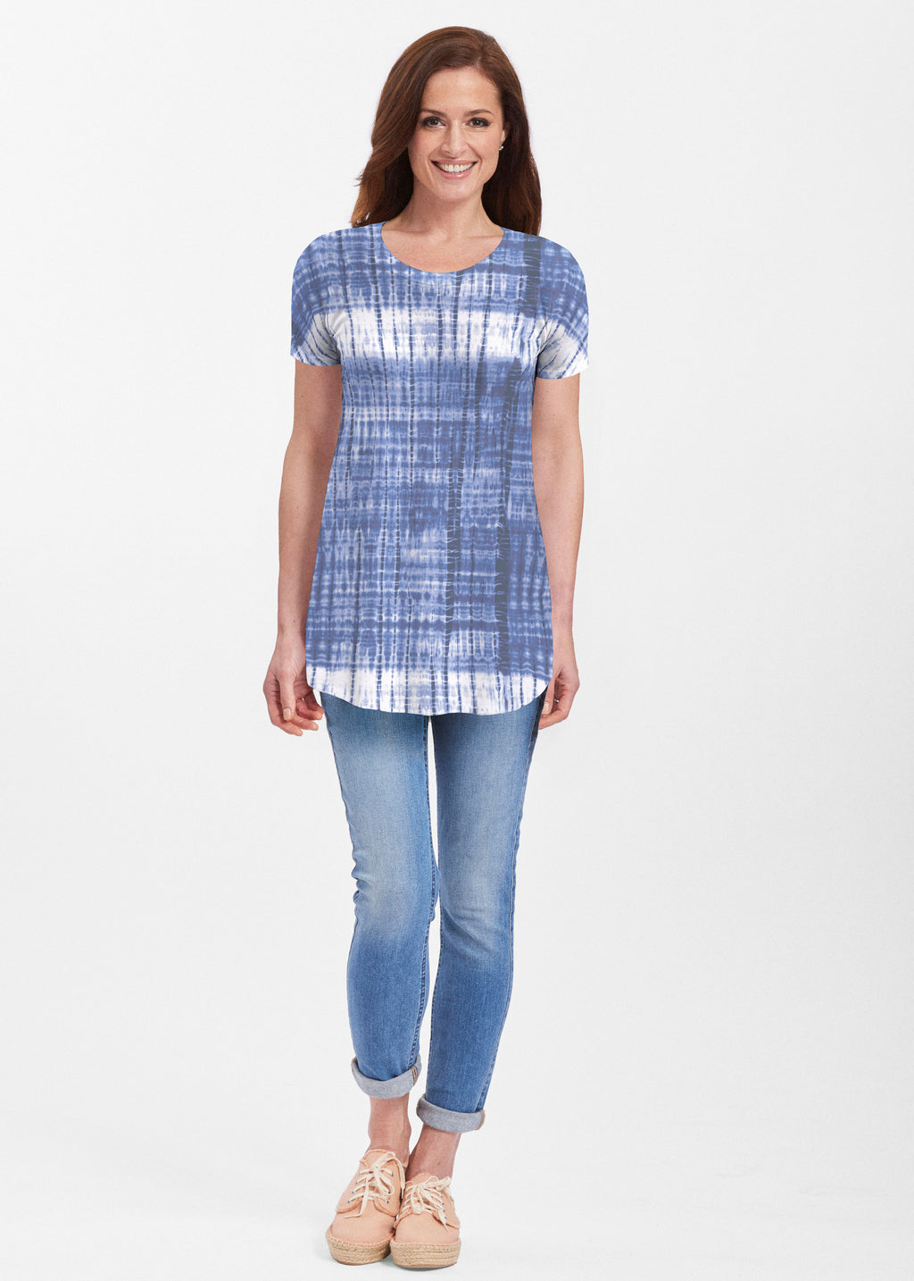 Denim Tie Dye (14230) ~ Signature Short Sleeve Scoop Neck Flowy Tunic