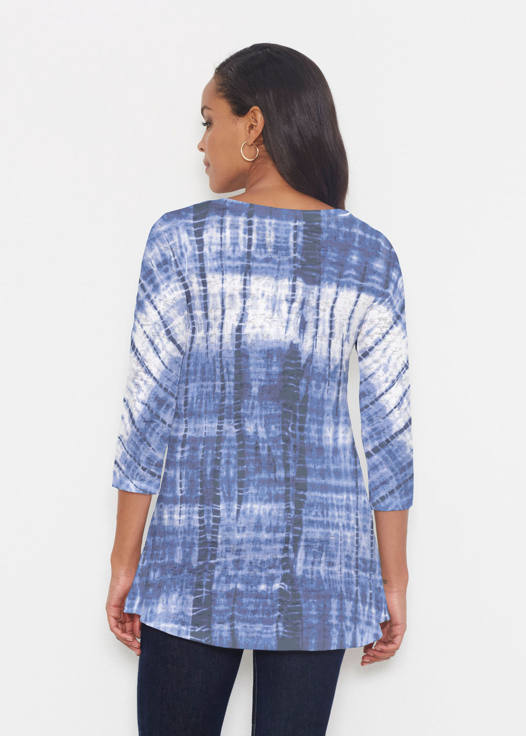 Express your boho side with this easy going abstract print using shades of denim tie dye on faux grasscloth fabric designed by Debra Valencia.