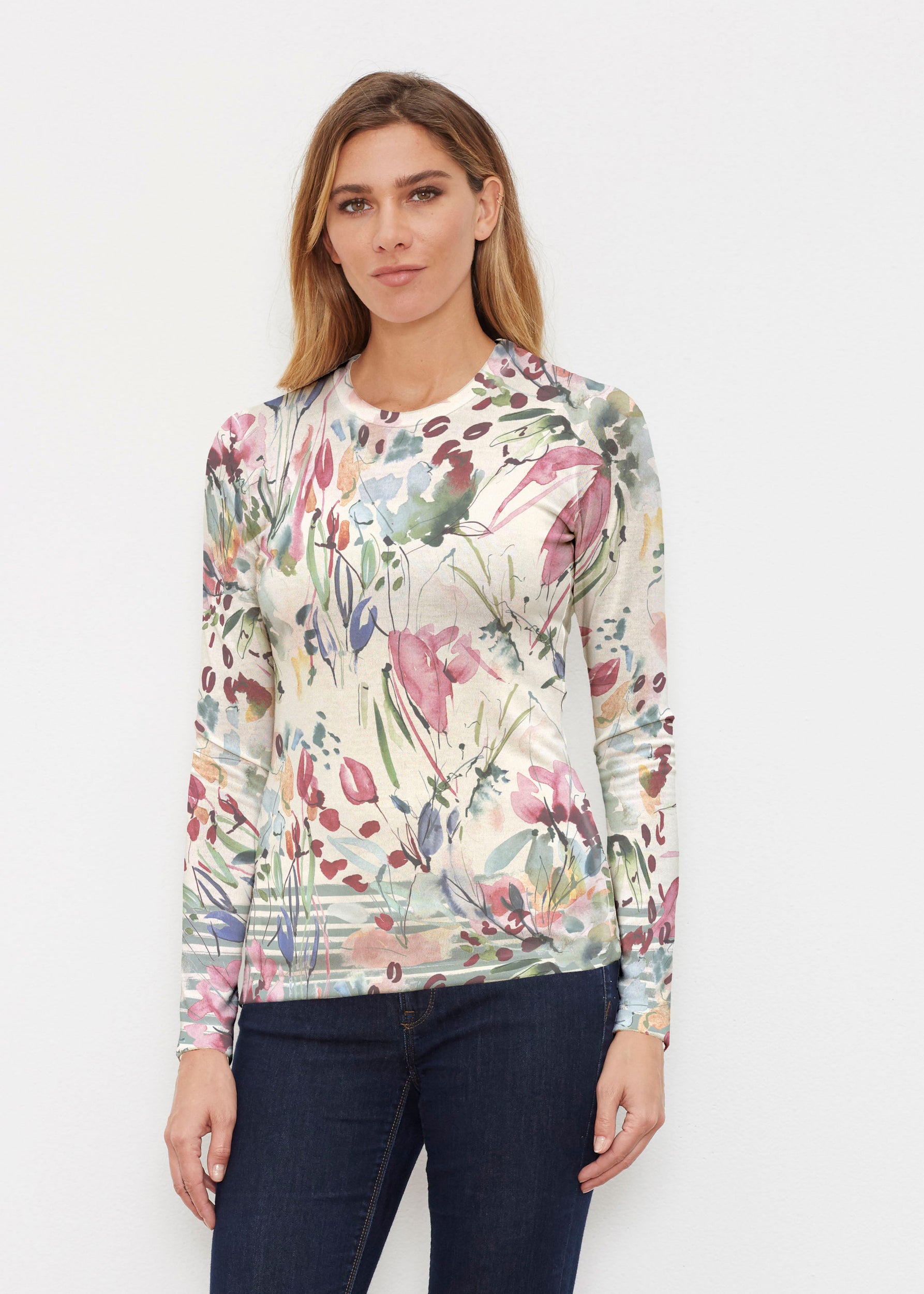 Polished and elegant, this top is a sophisticated option for chillier temps. Our soft and cozy Butterknit fabric, long sleeves, fitted shape, and crew neck make the perfect comfortable and stylish look in your favorite print.