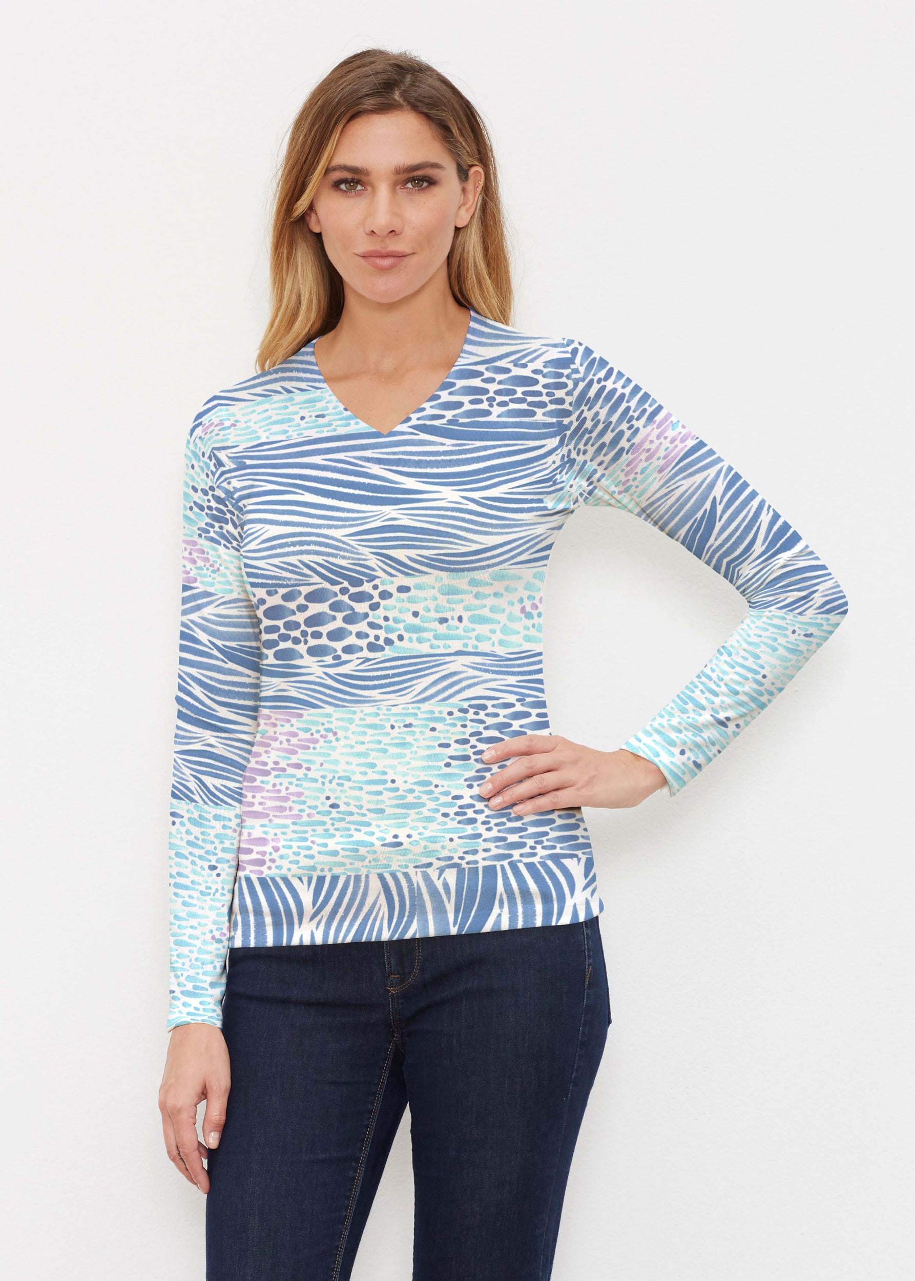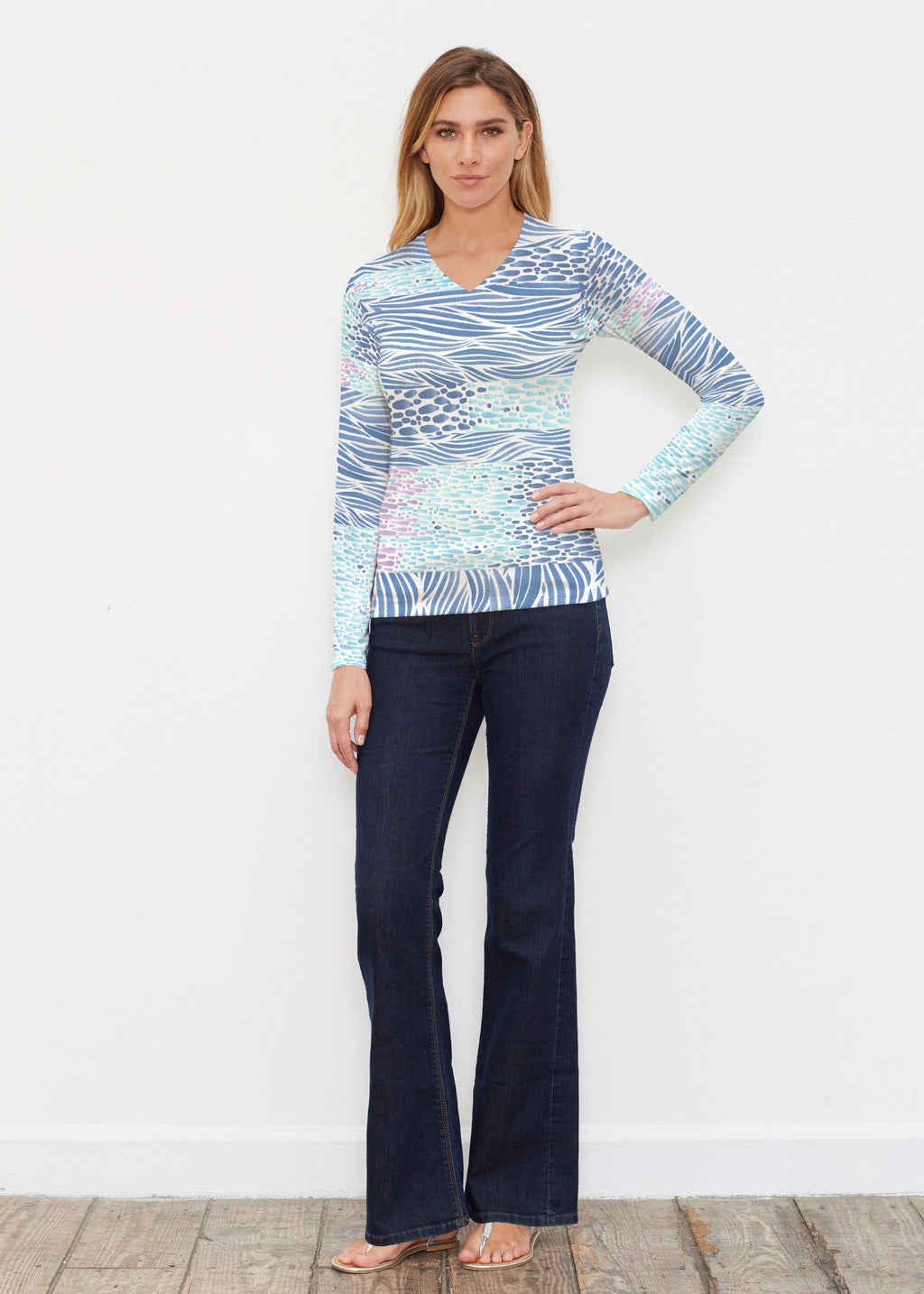Polished and elegant, this top is a sophisticated option for chillier temps. Our soft and cozy Butterknit fabric, long sleeves, fitted shape, and v- neck make the perfect comfortable and stylish look in your favorite print.