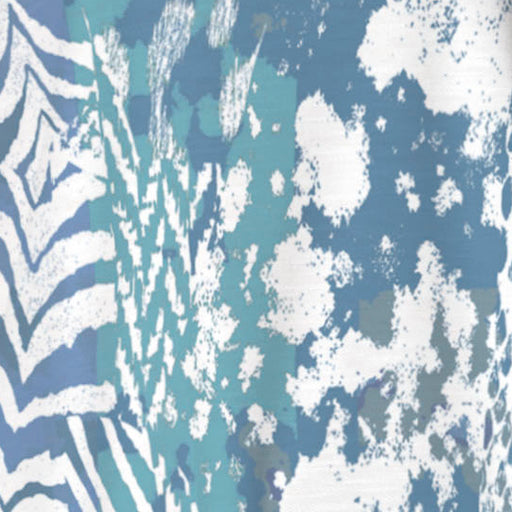 A stunning and sophisticated mixed animal print in beautiful blues and white with a pop of green. Designed by Susan Werner.