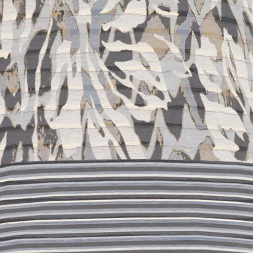 A mix of beige, grey, black and cream in abstract patterns of foliage designed by Carolyn McNeil.