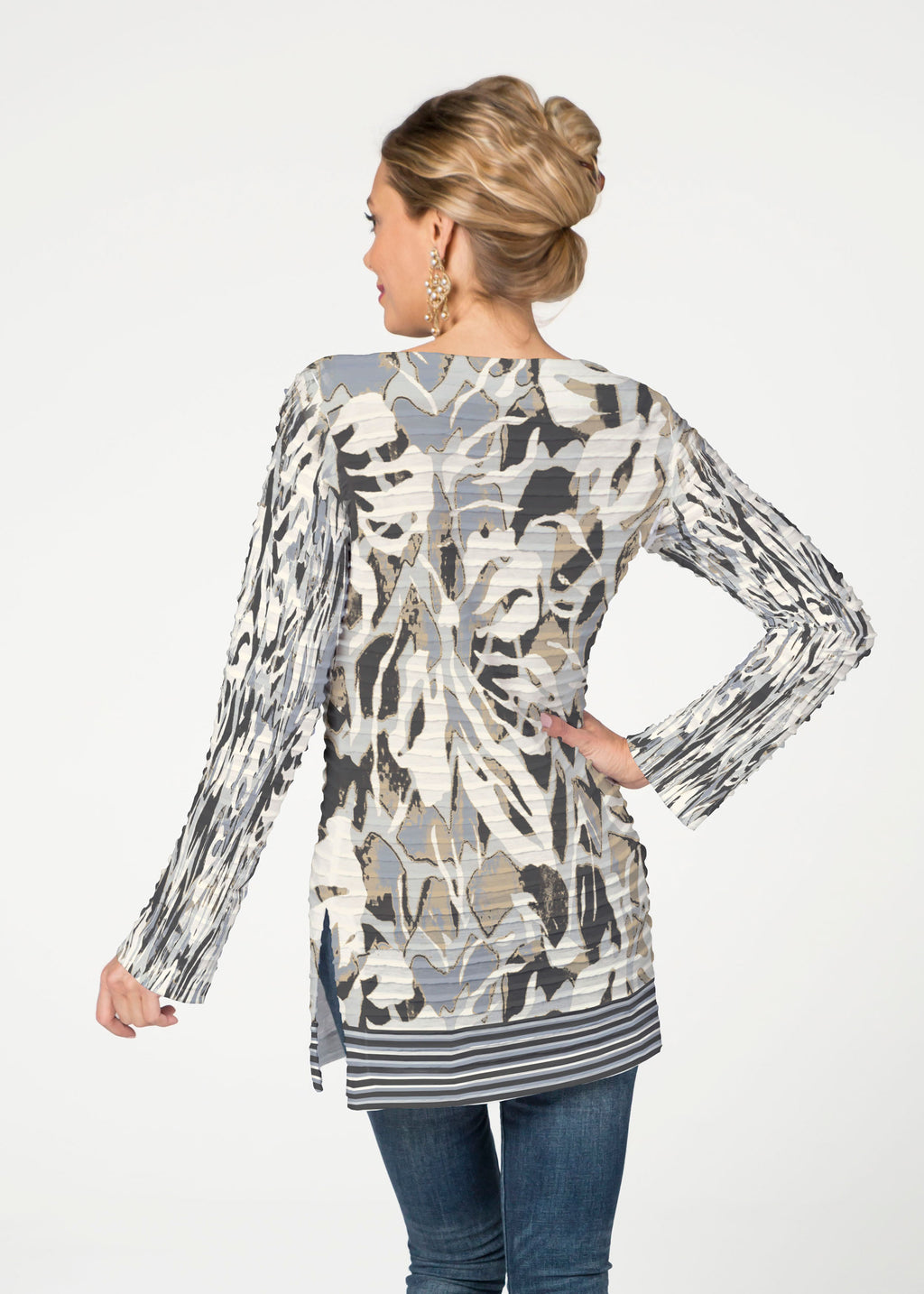 Mystic Floral Stripe Grey (19170) ~ Banded Boatneck Tunic