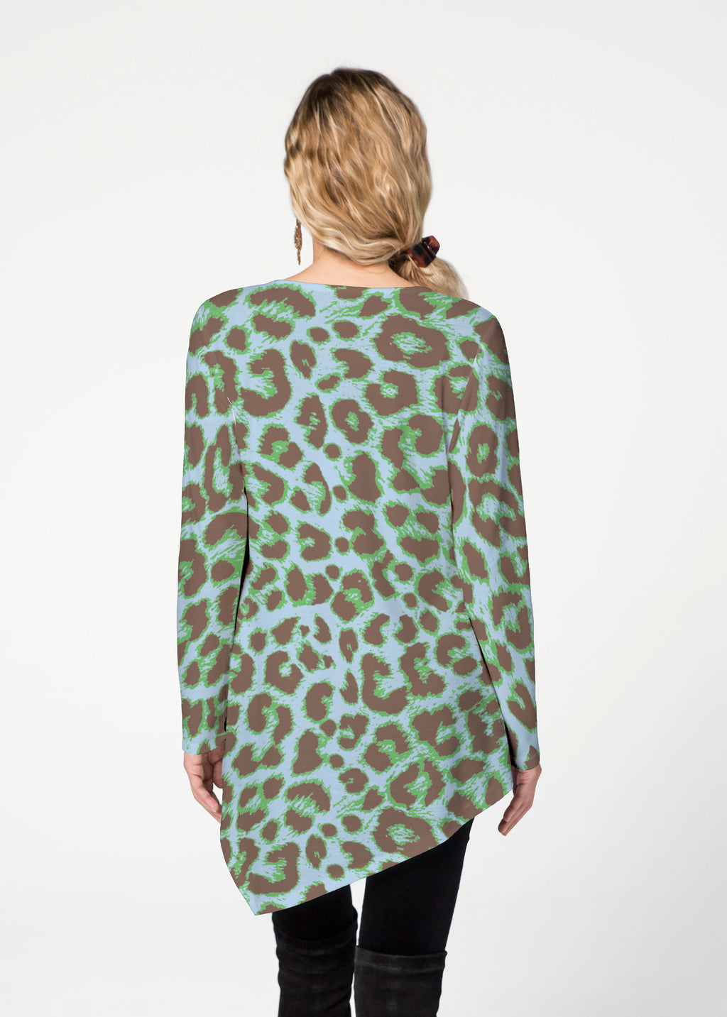 The Asymmetrical French Terry Tunic is soft and lightweight. This Relaxed crew neck features an Asymmetrical hem that falls just below the hip with long sleeves. Your one-of-a-kind garment is created using all-over soft garment sublimation printing. Selected designs are individually printed into your garment.