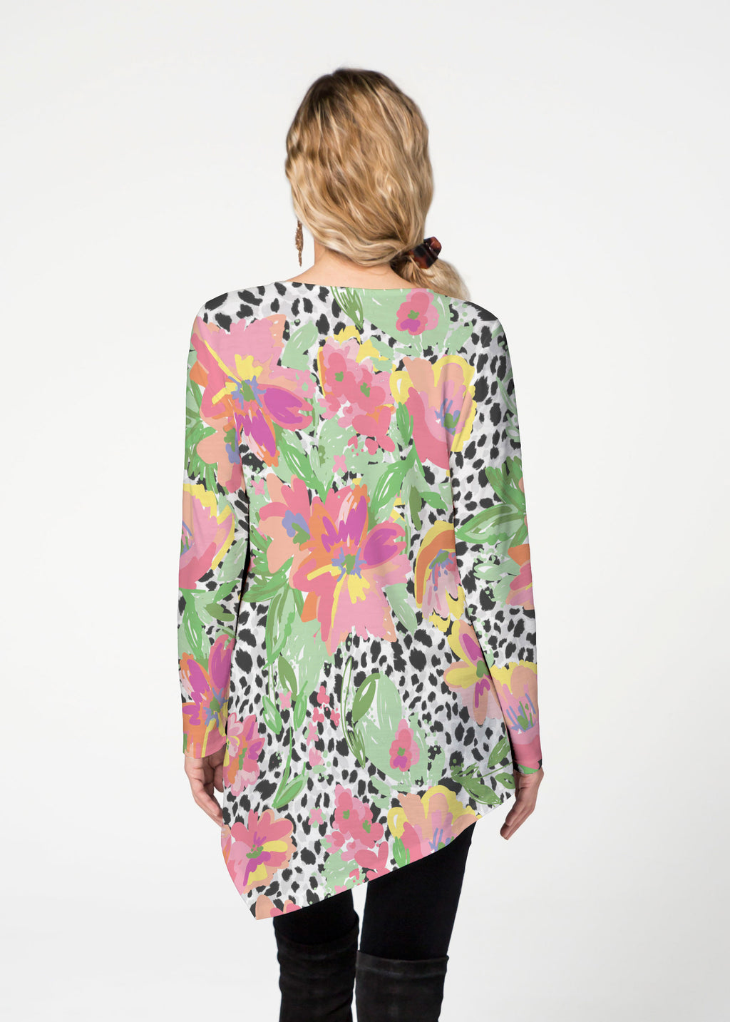 Spring Leopard Floral (14225) ~ Asymmetrical French Terry Tunic
