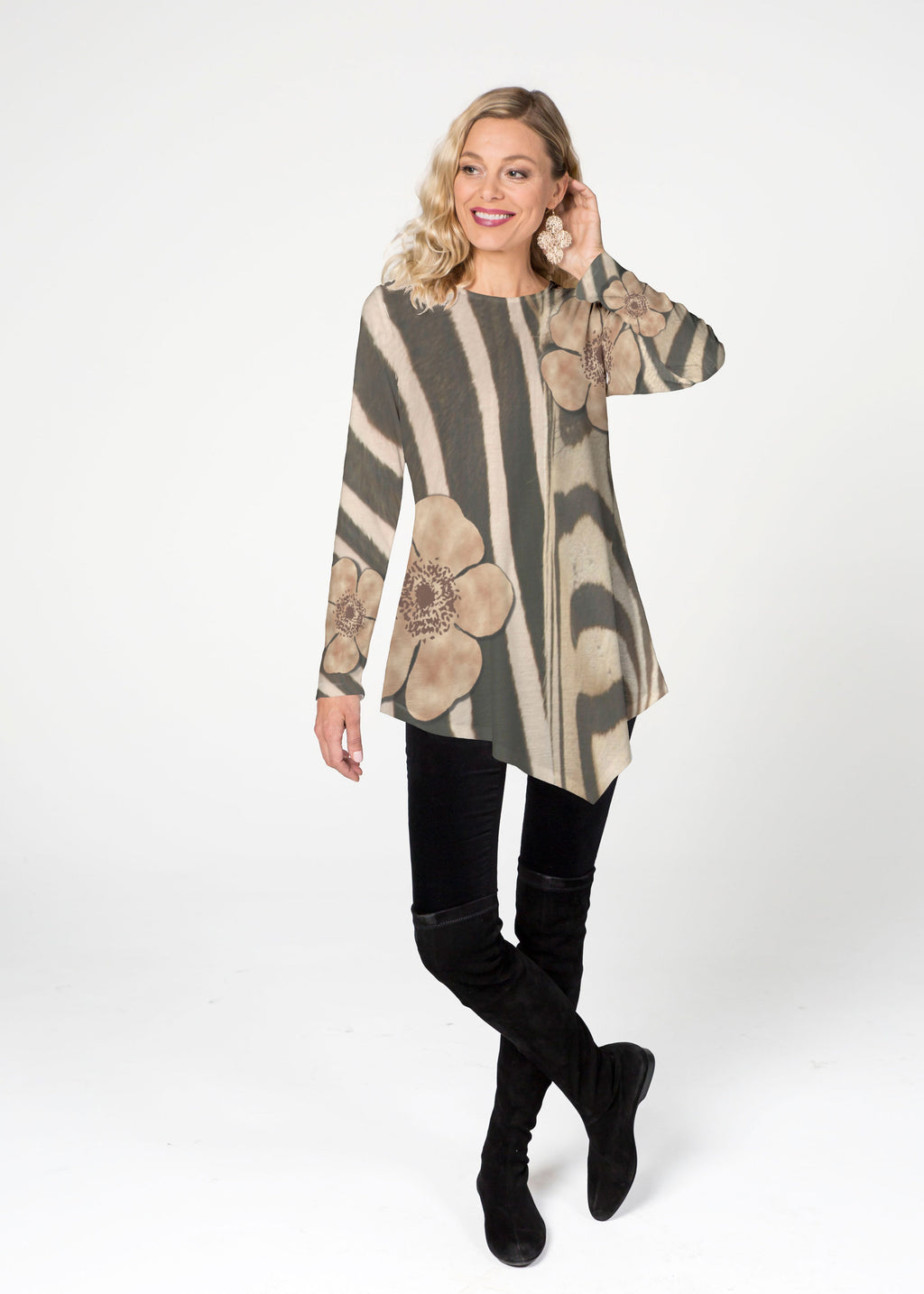 Be bold in this fun trendy animal print with poppy florals by Susan Werner.