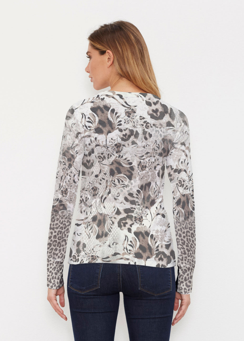 Go wild for this stunning leopard print with a added twist of a fun floral print, in neutral colors by Susan Werner.