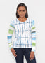 A fun play on stripes with bold beautiful colors in blue, green and aqua, designed by Susan Werner.