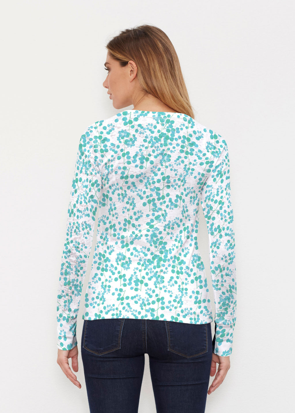 A stunning print of fruitful berries in trending shades of teal, designed by Susan Werner.