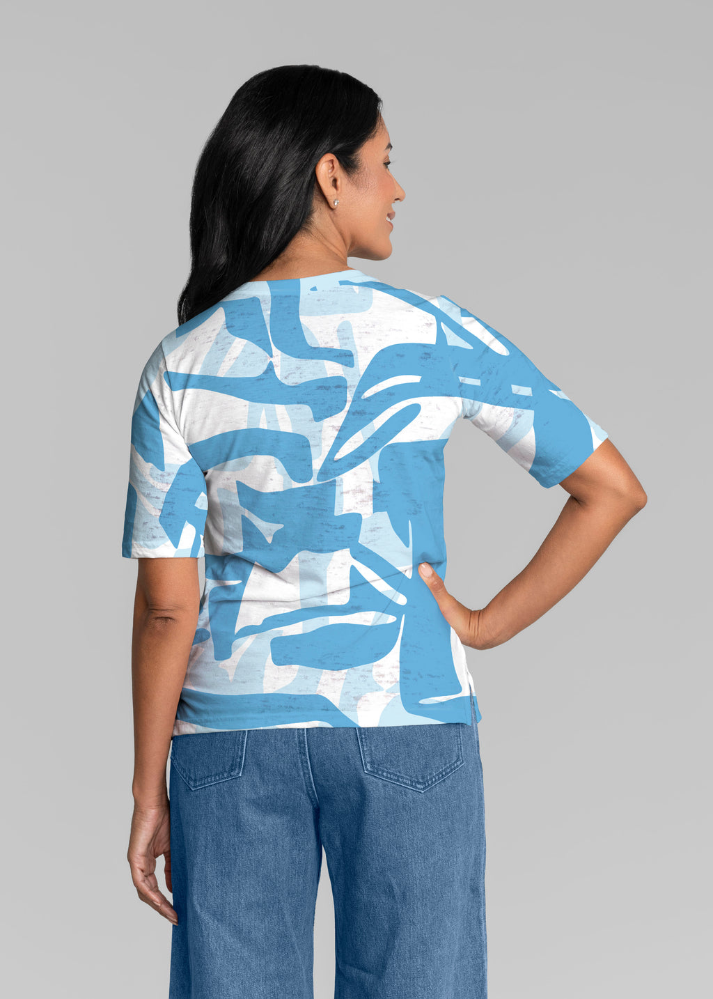 • Amaze Sky (26025) ~ Signature Elbow Sleeve V-Neck Top