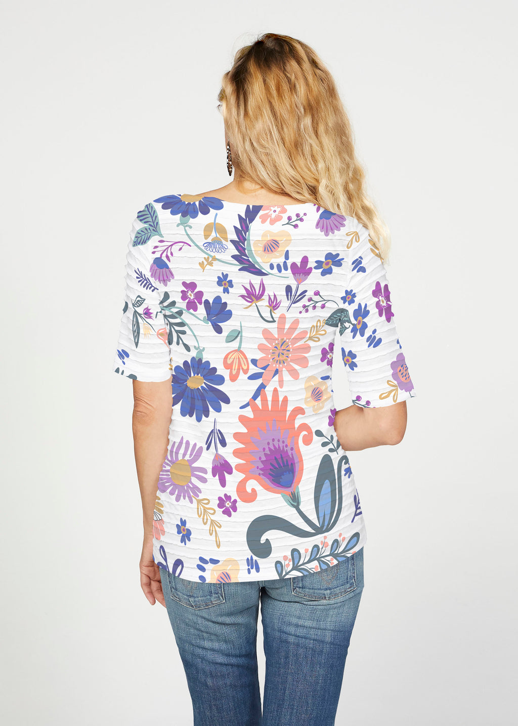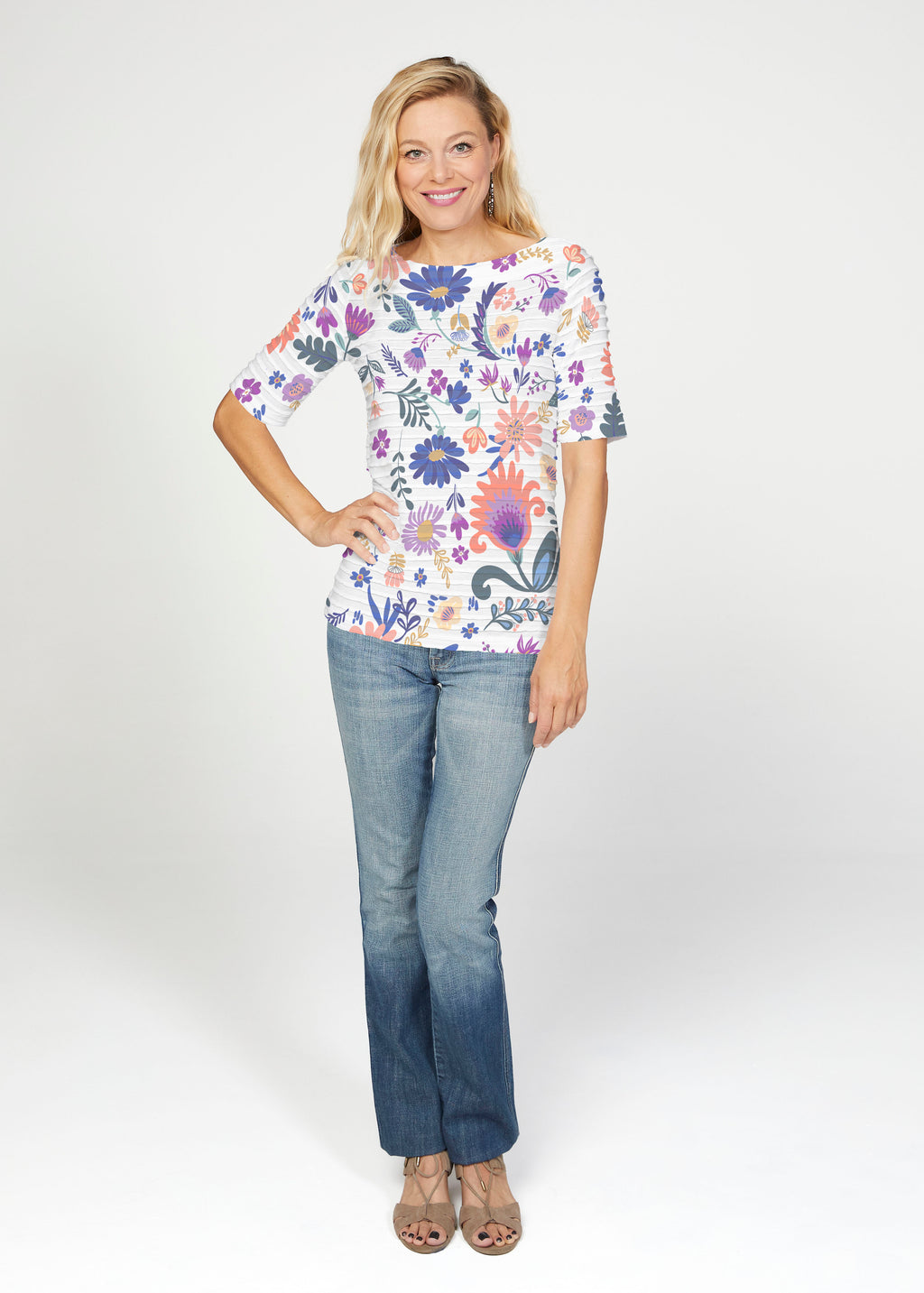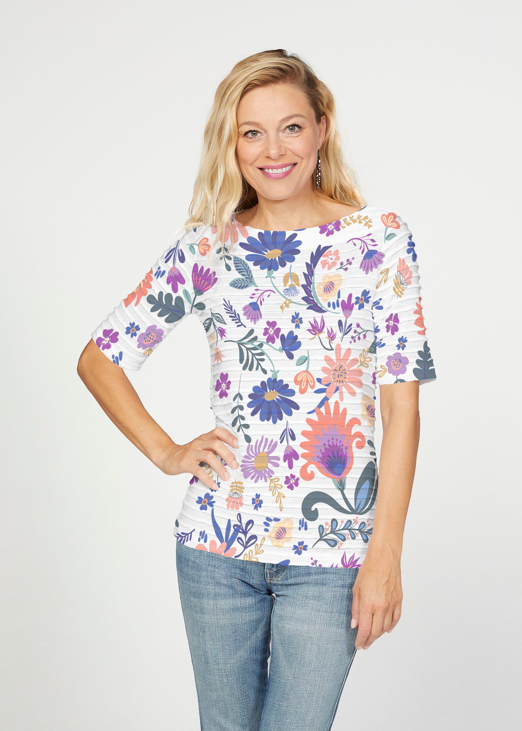 Boho Girl Crocus (26046) ~ Banded Elbow Sleeve Boat Neck Top