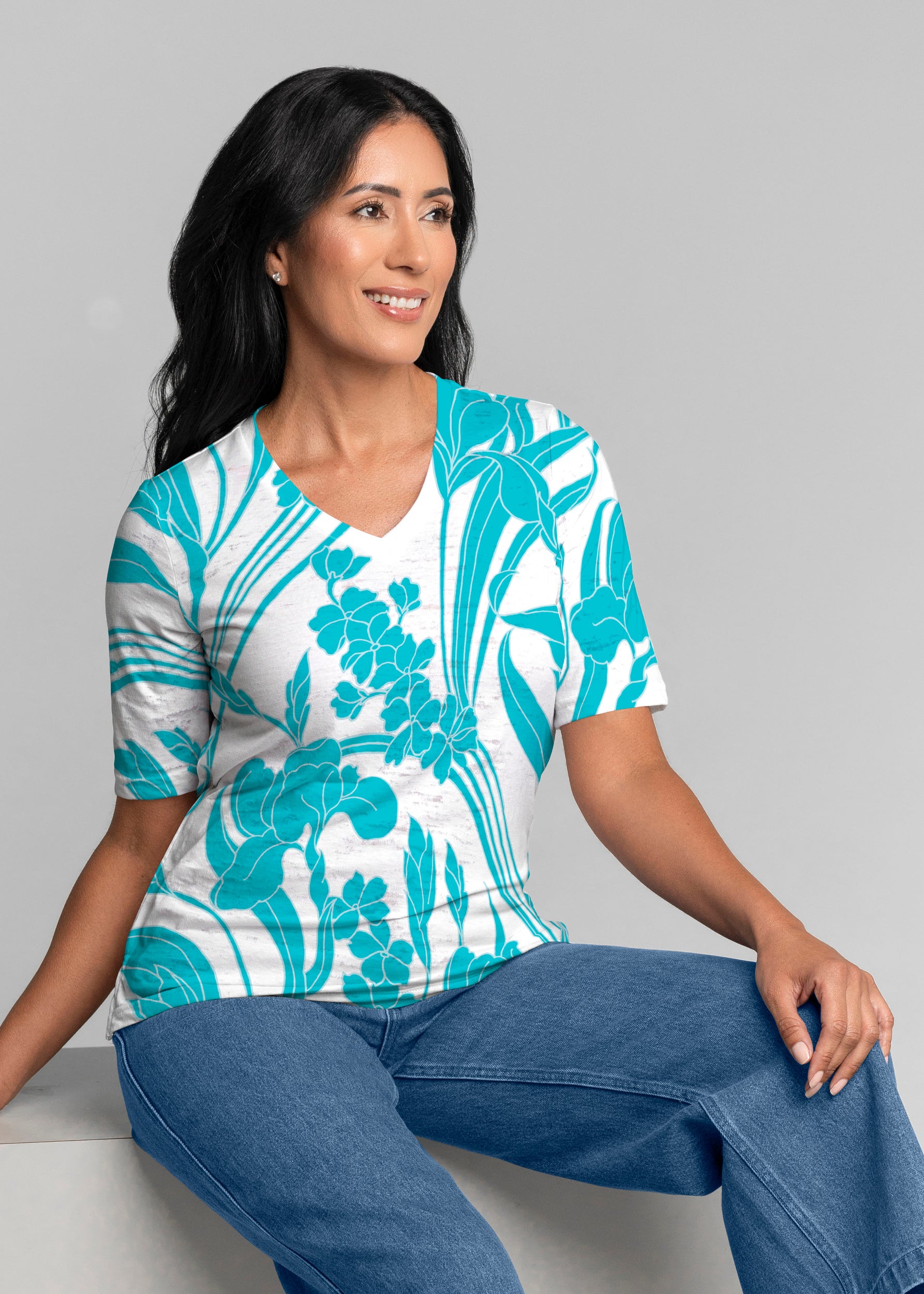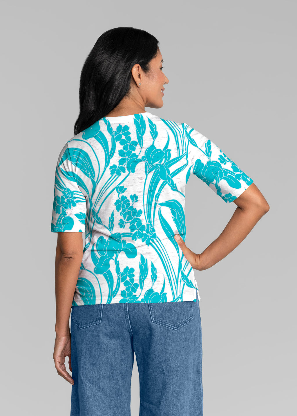 • Iris and Vine Blue (26049) ~ Signature Elbow Sleeve V-Neck Top