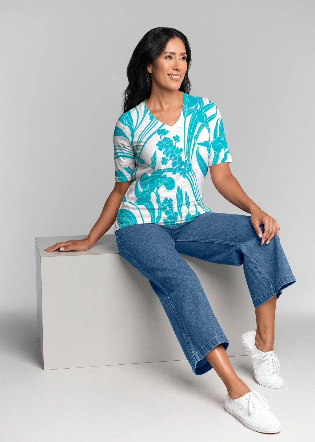Iris and Vine Blue (26049) ~ Signature 3/4 Sleeve V-Neck Top