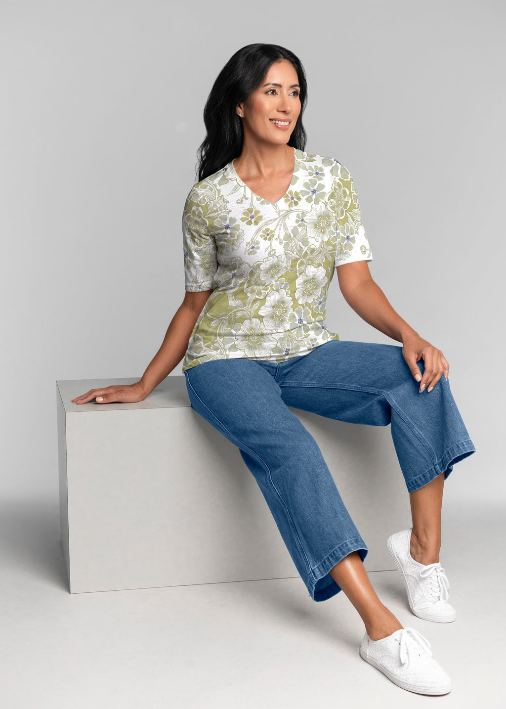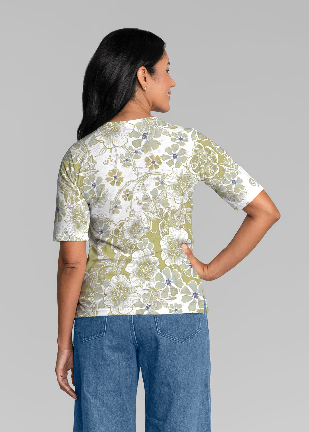 May Flowers (8027) ~ Signature Elbow Sleeve V-Neck Top
