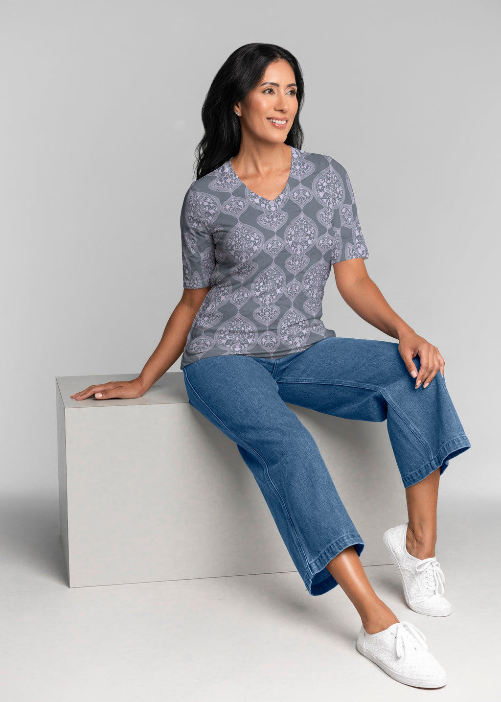 • Mindful Eventide (26013) ~ Signature Elbow Sleeve V-Neck Top