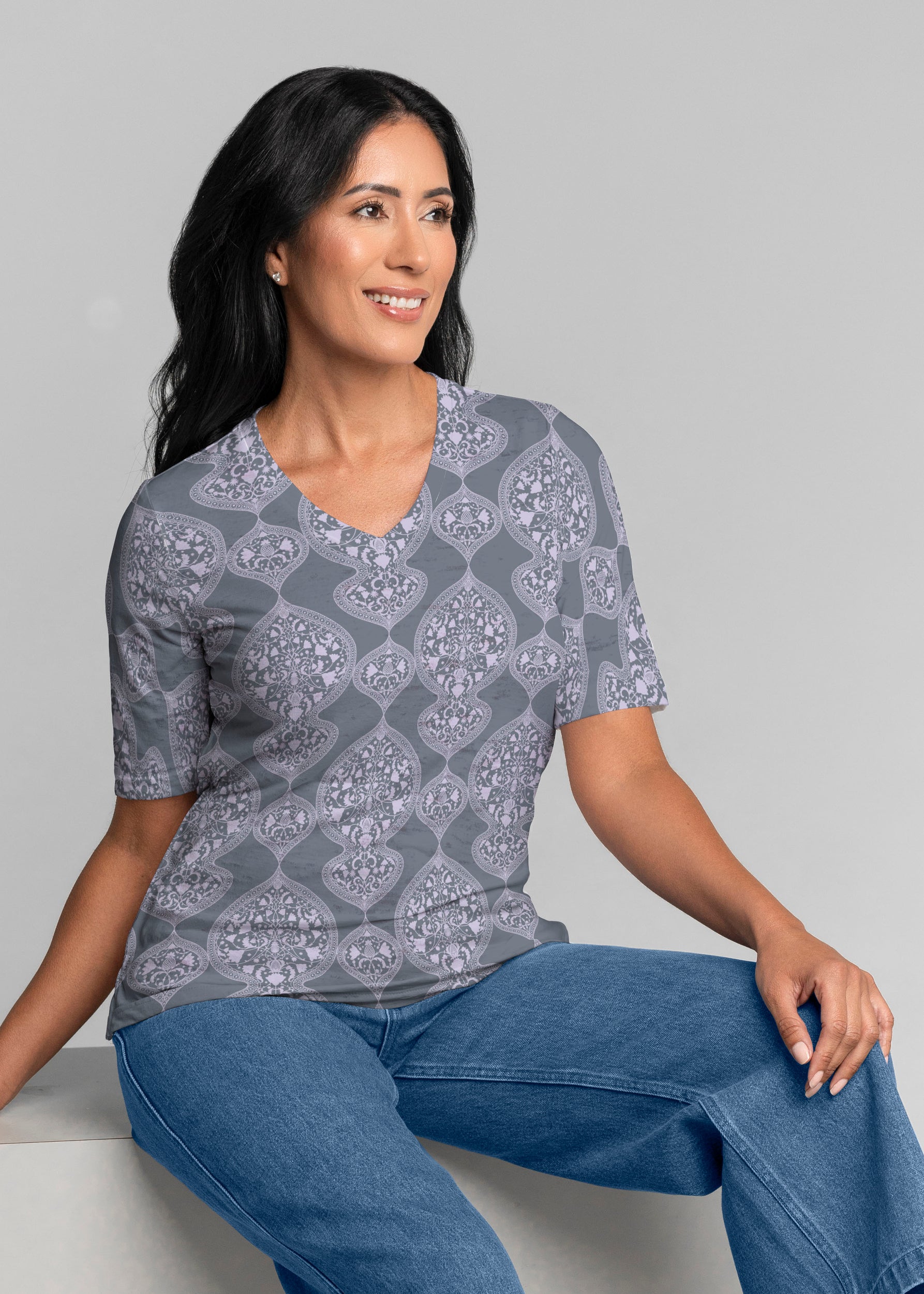 Lilac (16255) ~ Signature Elbow Sleeve V-Neck Top