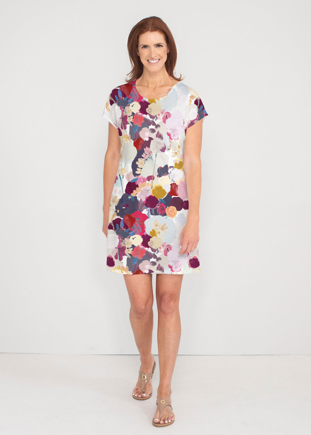 Our Lucy Tee Dress is effortless, versatile and soft to the touch -- perfect for all day style and comfort. A soft crew neckline, seamless sleeve and a relaxed shape made in our vibrant Lucy fabric ends above the knee.