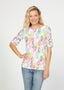Abstract Pastel Ikat (7813) ~ Banded Elbow Sleeve Boat Neck Top