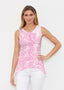 This tank is the perfect combination of an elegant shape with a sporty look. A high-low cascading hemline falls loosely over the hip in our Signature burnout fabric. No sleeves and a shallow scoop neckline give this tank its sporty vibe. -- Your one-of-a-kind garment is created using all-over soft garment sublimation printing. Selected designs are individually printed into your garment. Cotton/Polyester blend.