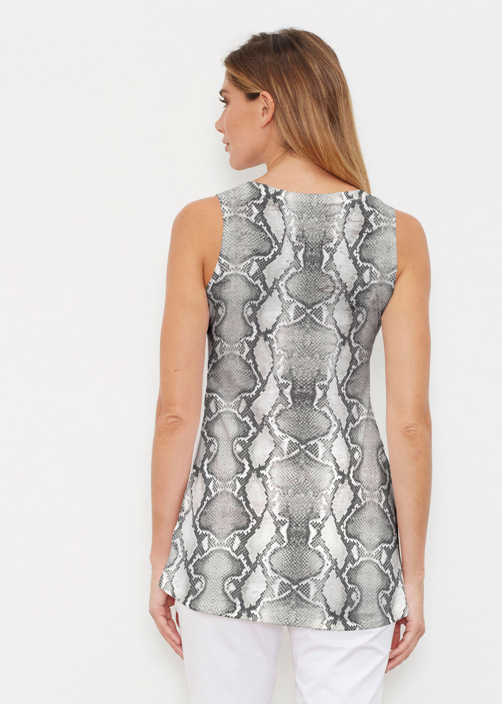 So on trend right now, let this silver python print slither into your wardrobe this season. Designed by Susan Werner.