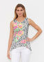 This tank is the perfect combination of an elegant shape with a sporty look. A high-low cascading hemline falls loosely over the hip in our Signature burnout fabric. No sleeves and a shallow scoop neckline give this tank its sporty vibe. -- Your one-of-a-kind garment is created using all-over soft garment sublimation printing. Selected designs are individually printed into your garment. Cotton/Polyester blend.