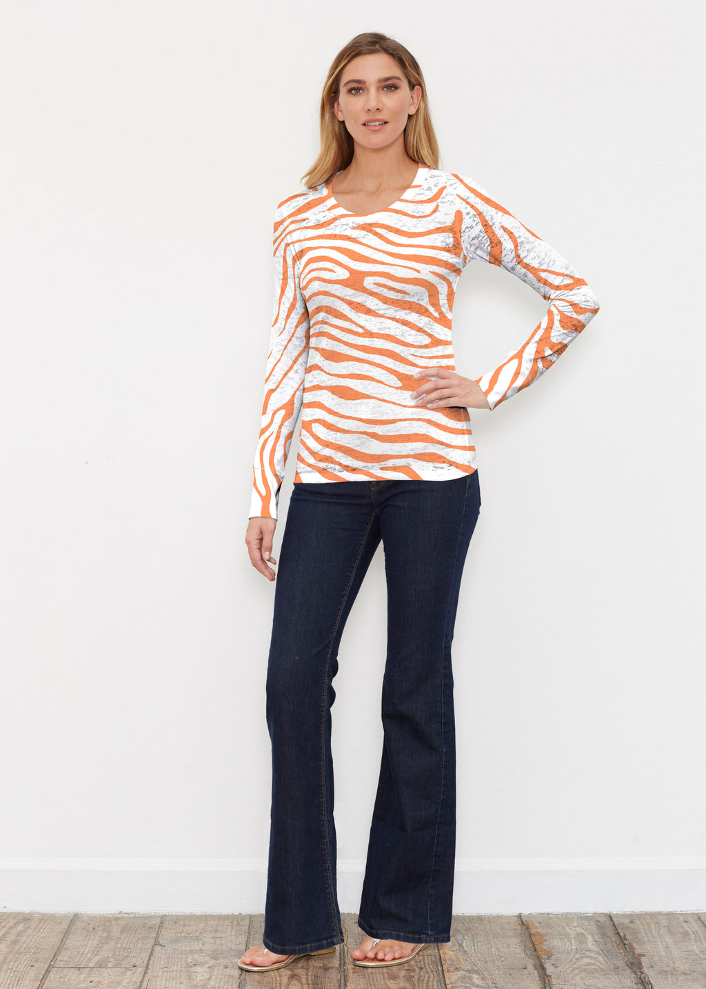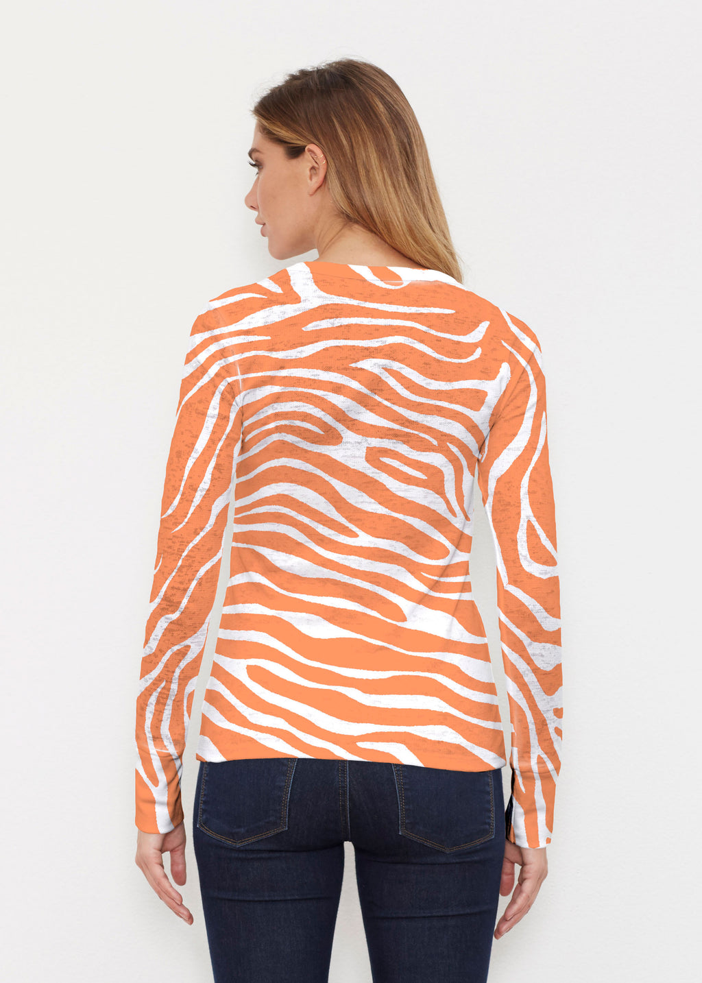 Be on trend with this wild and bold zebra print in orange and white by Susan Werner.