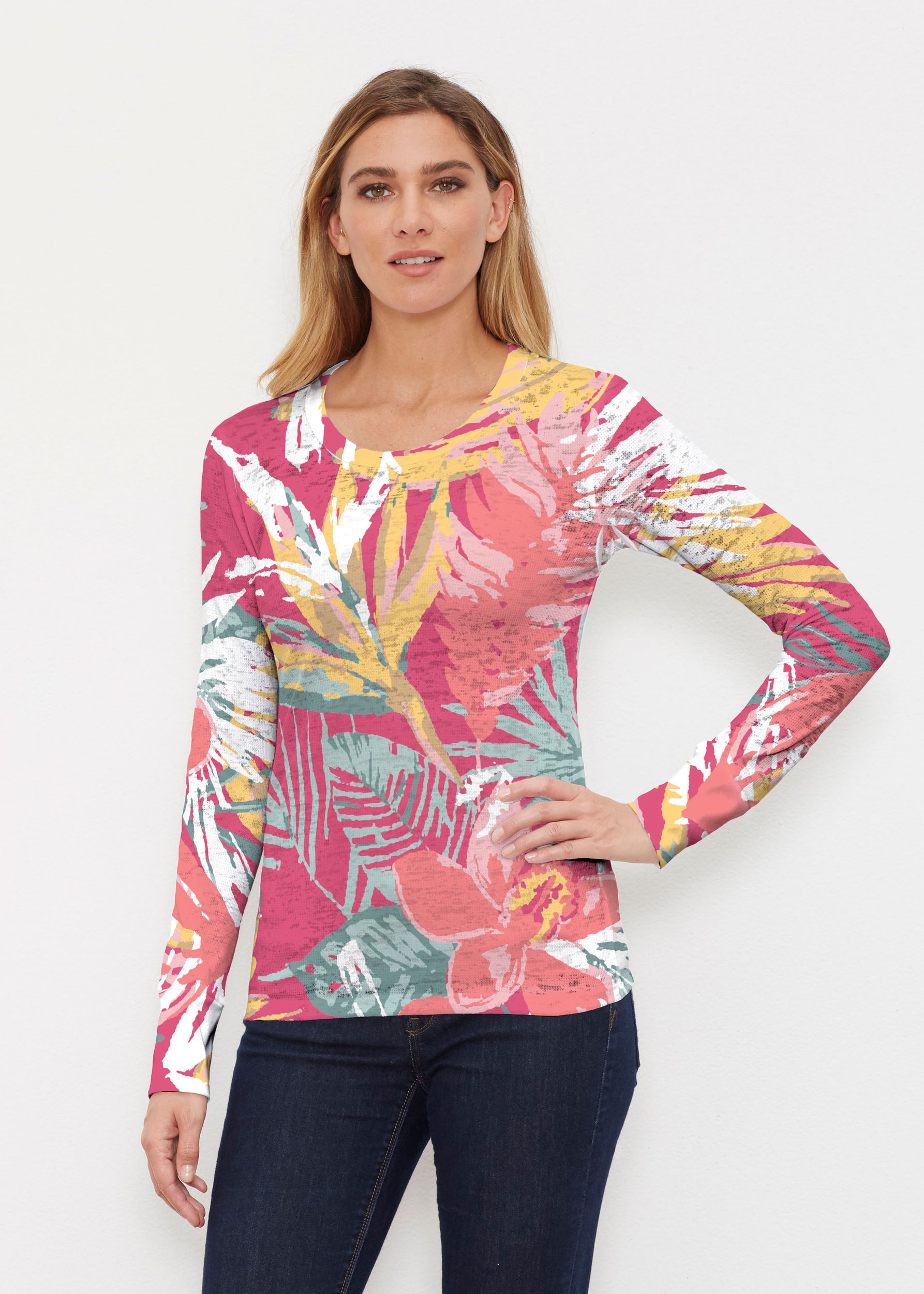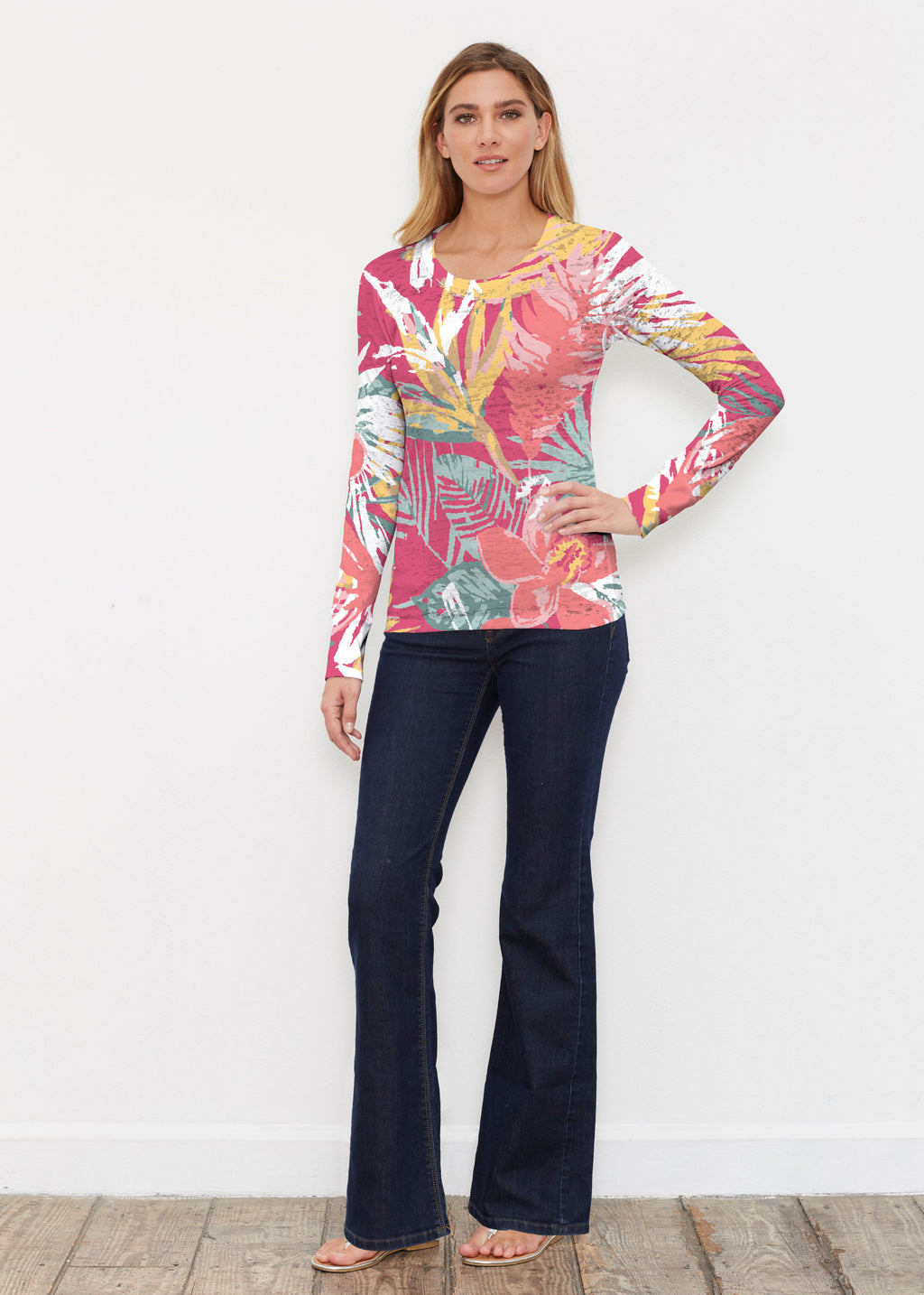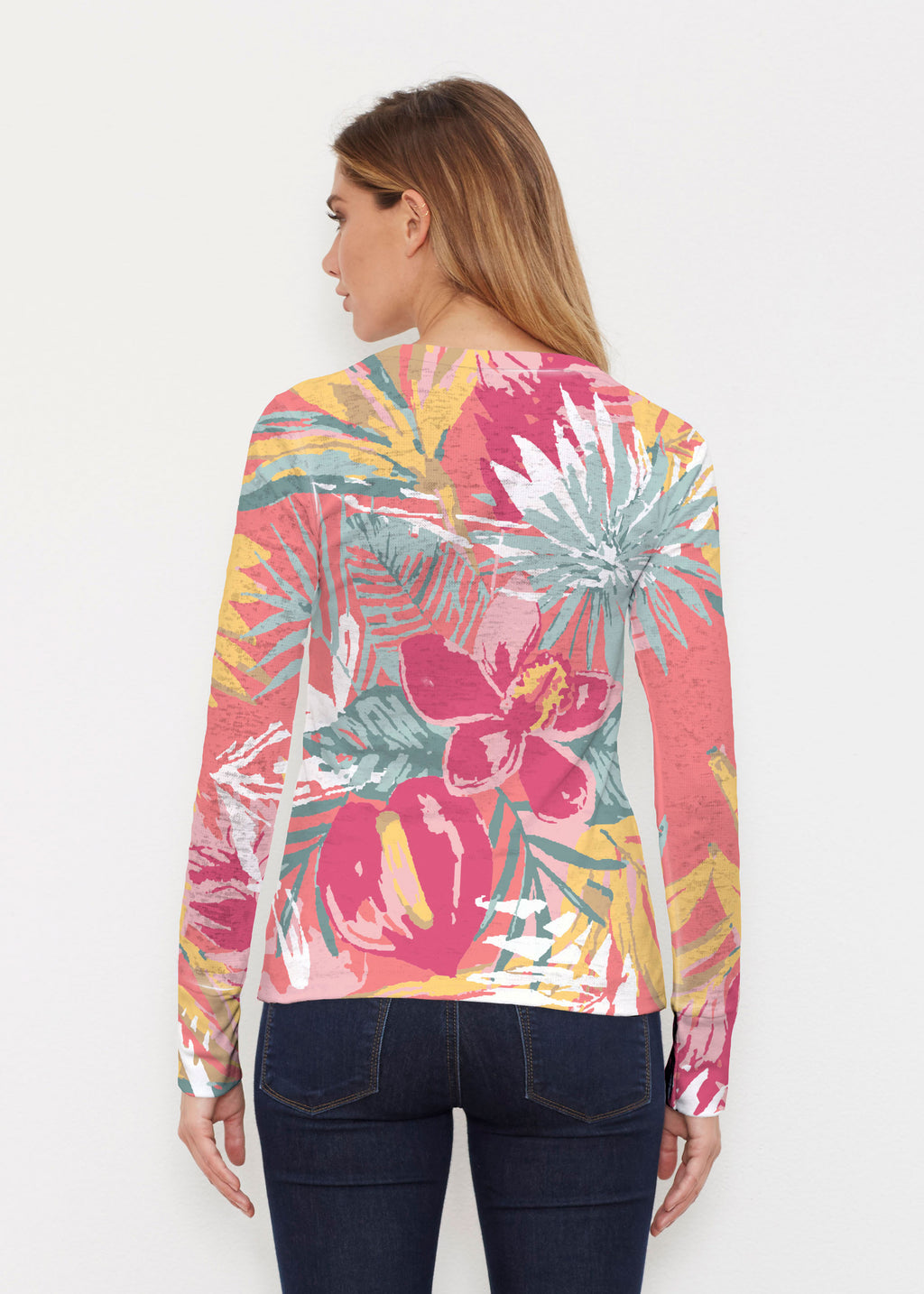 Gorgeous floral print with pink, coral, yellow, green and white designed by Sara Berrenson.