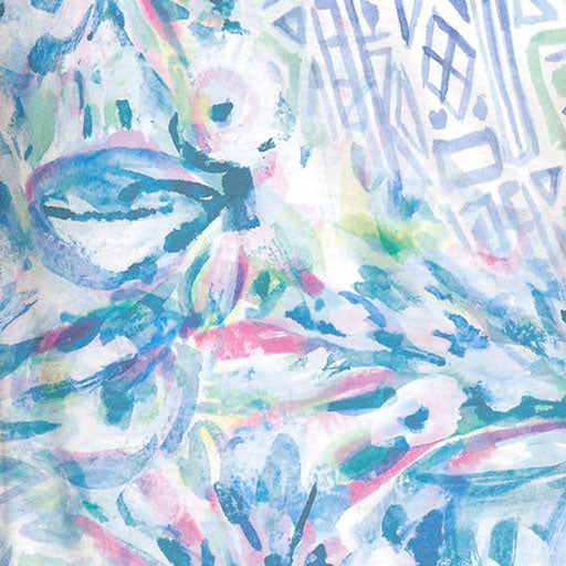 A "Lilly" feel of soft greens and blues with scattered splashes of hot pink and teal.