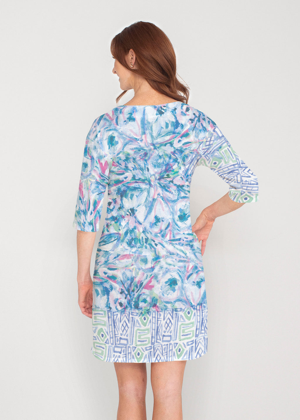 Floral Spritz Turquoise (22093) ~ Classic V-neck Swing Dress