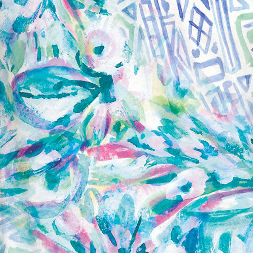A "Lilly" feel of soft greens and blues with scattered splashes of hot pink and teal.