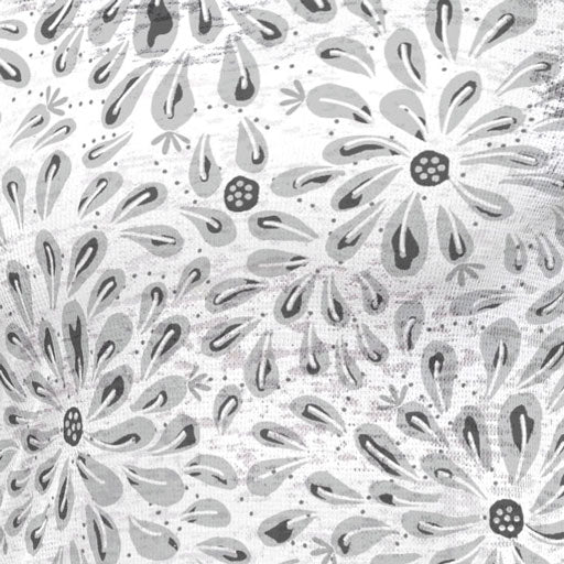 Whimsical abstract daisies in black and grey with tastefully placed dots, this Susan Werner creation screams playful and fun.
