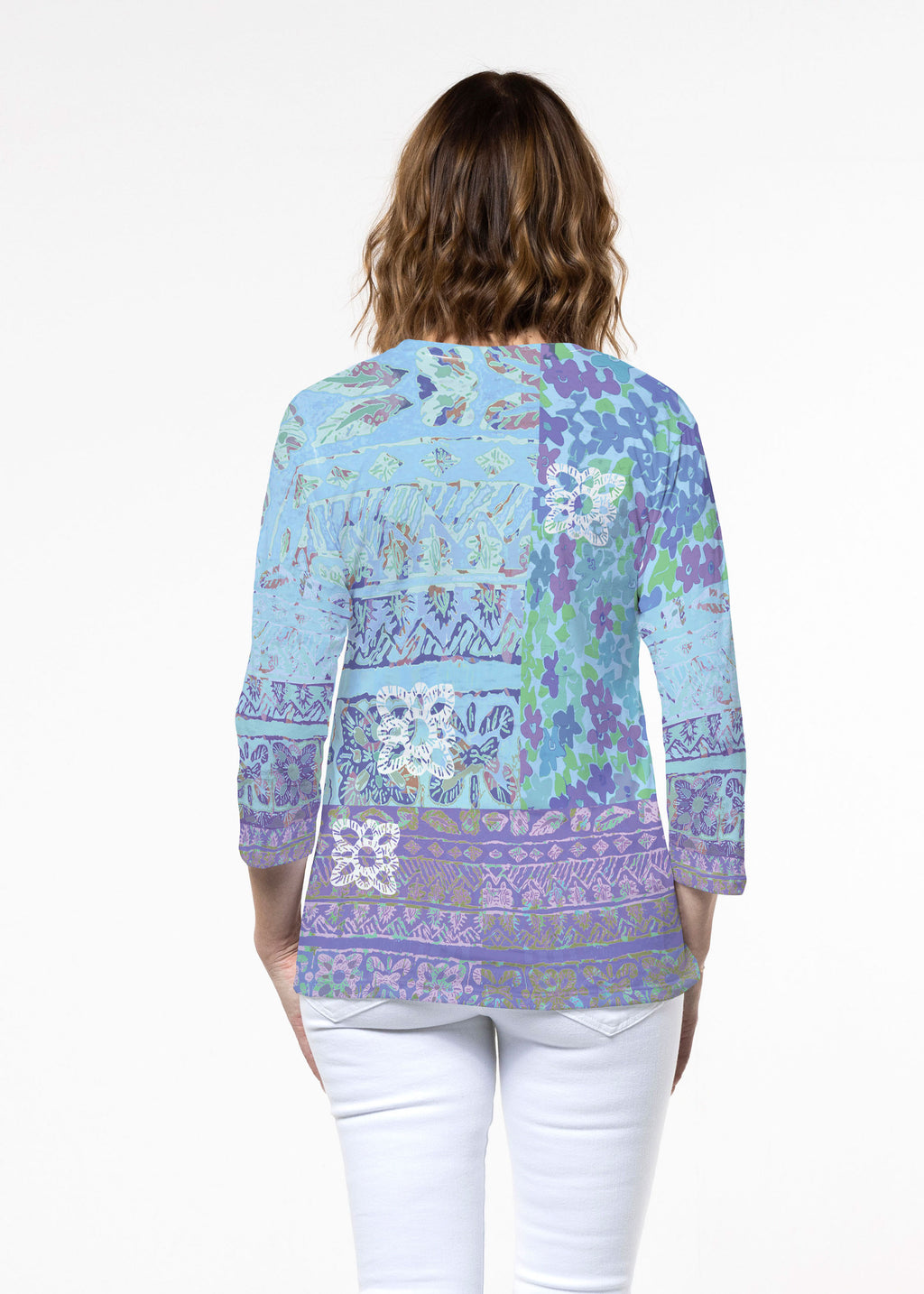 Aspen Aqua (19186) ~ Signature 3/4 Sleeve V-Neck Top