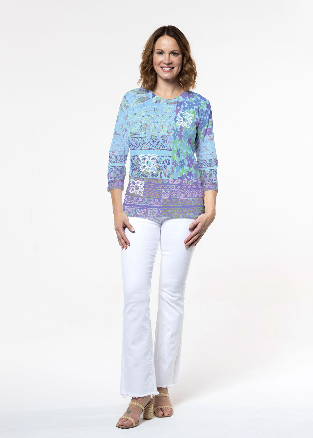 Aspen Aqua (19186) ~ Signature 3/4 Sleeve Crew Neck Top