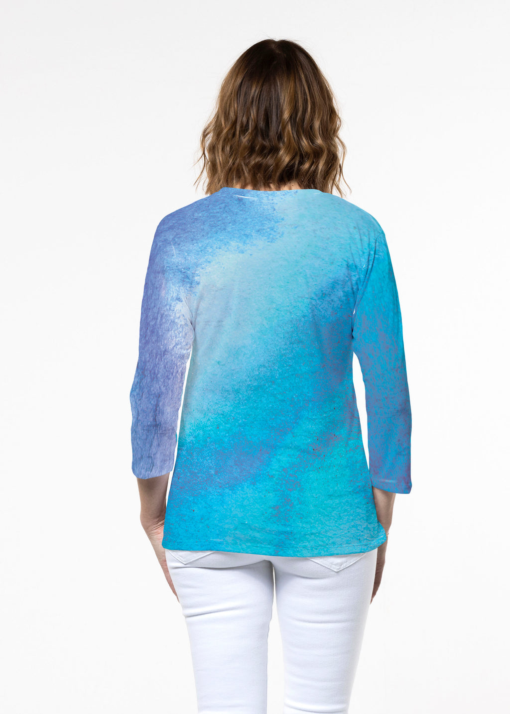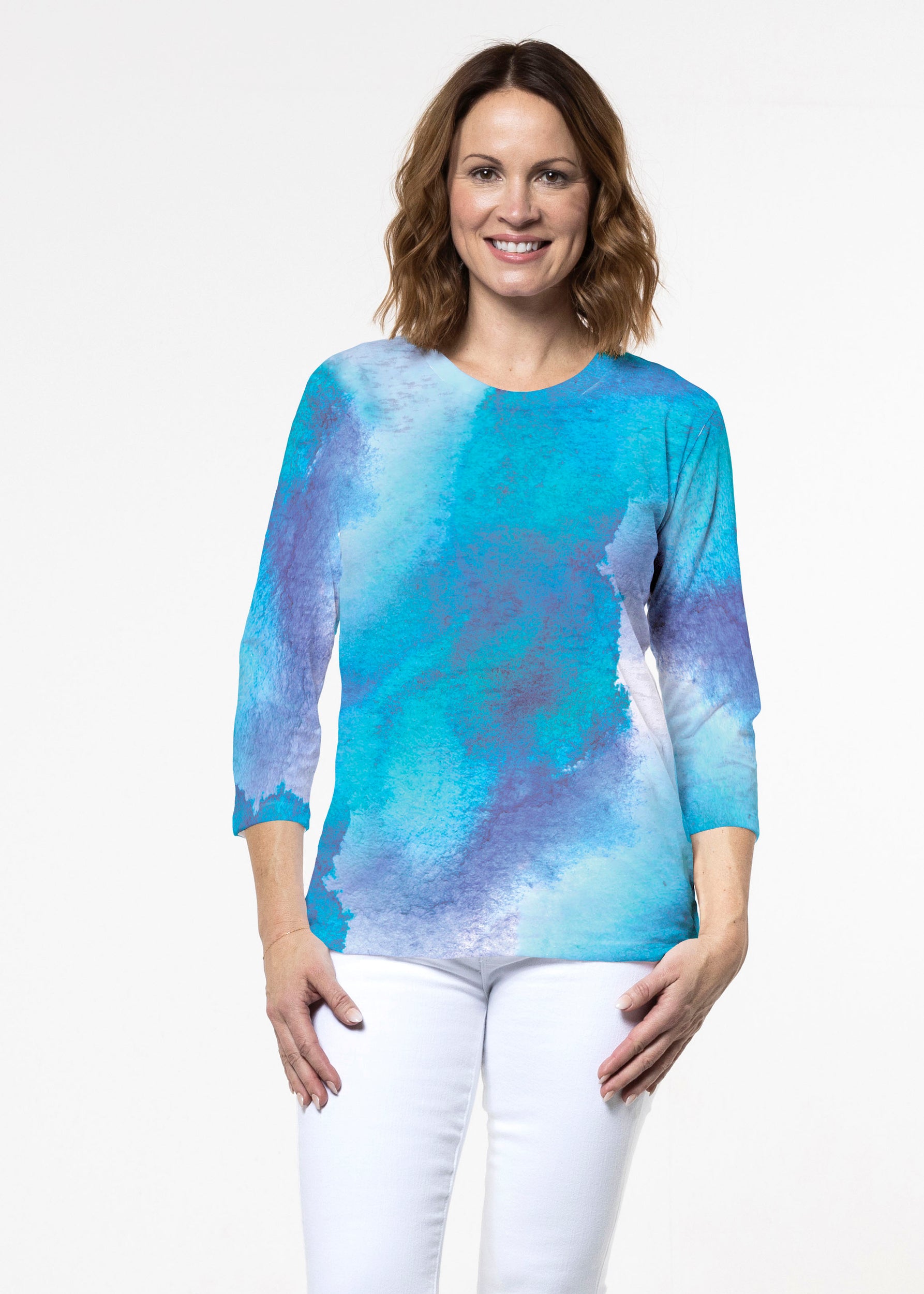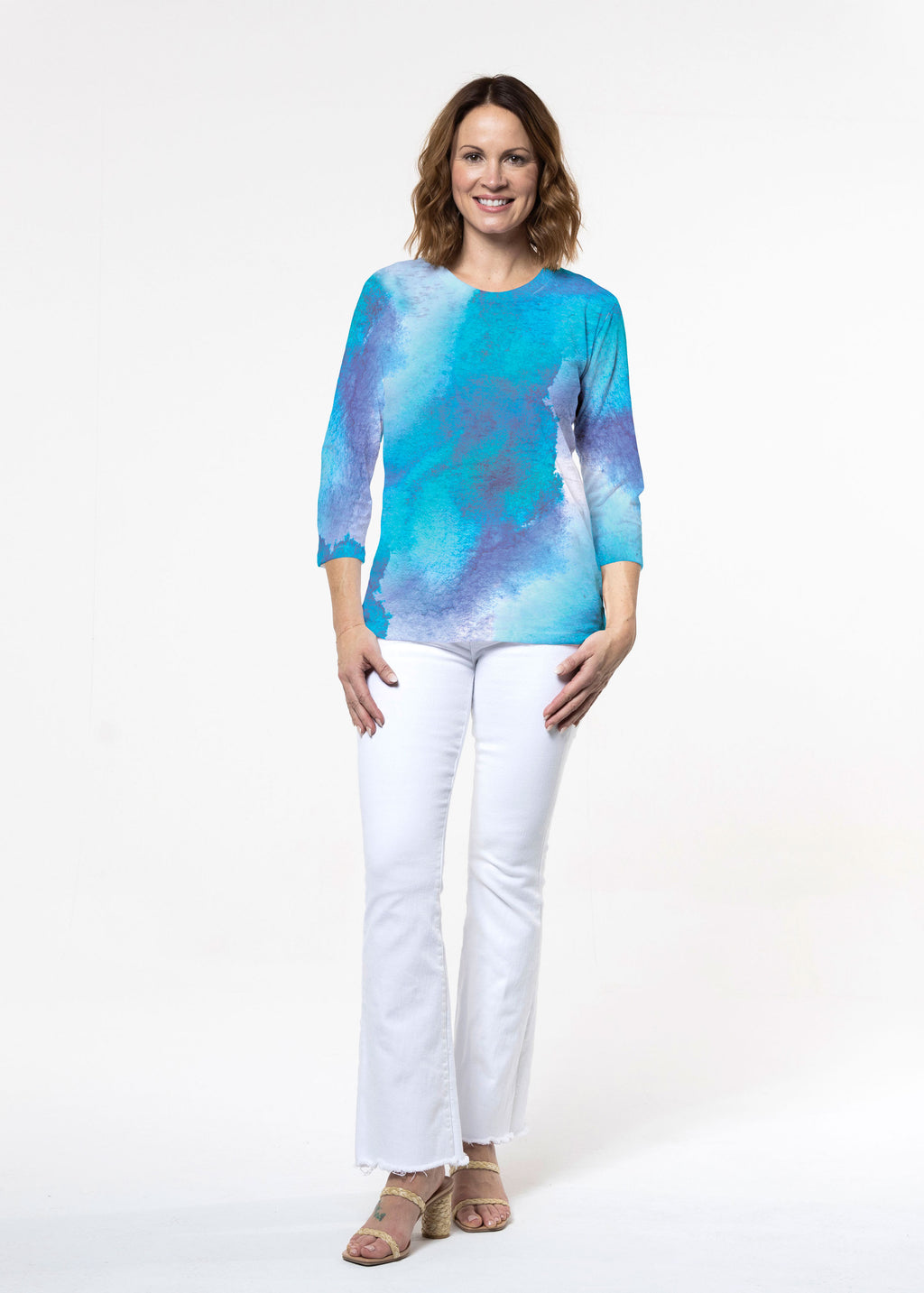 Aspen Aqua (19186) ~ Signature 3/4 Sleeve Crew Neck Top