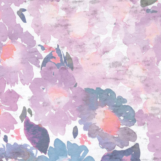 A lovely array of purple and pink watercolor flowers on a white and grey canvas.