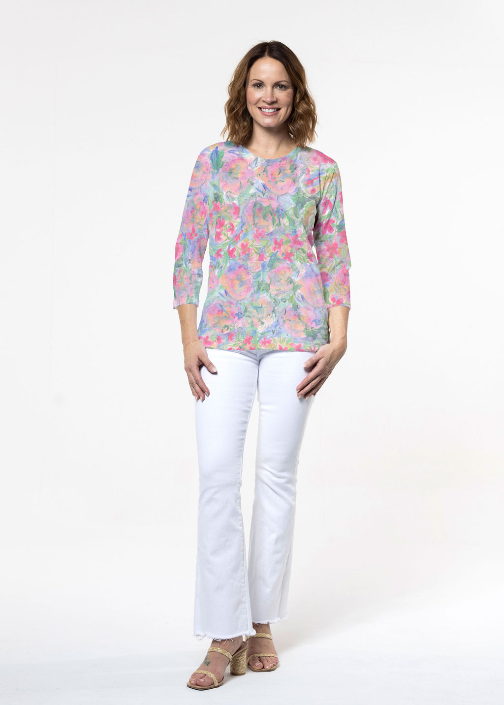 Flattering Signature fabric 3/4 sleeves and a crew neck are perfectly proportioned and more of a relaxed fit.