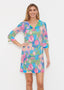 Floral Spritz Turquoise (22093) ~ Classic V-neck Swing Dress