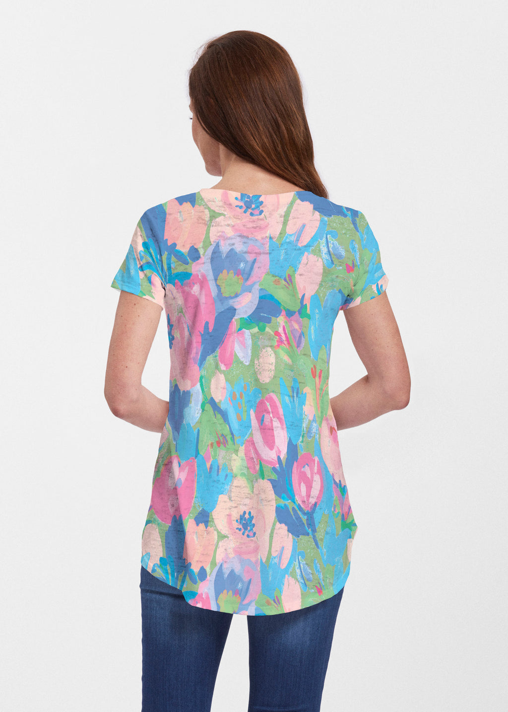 An effortlessly flattering tunic in our soft Signature burnout fabric featuring short sleeves and a scoop neck with a body that flows into a full, swinging shirttail hem.