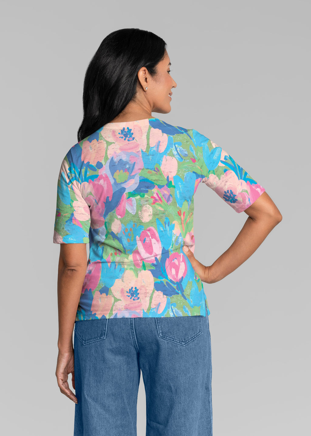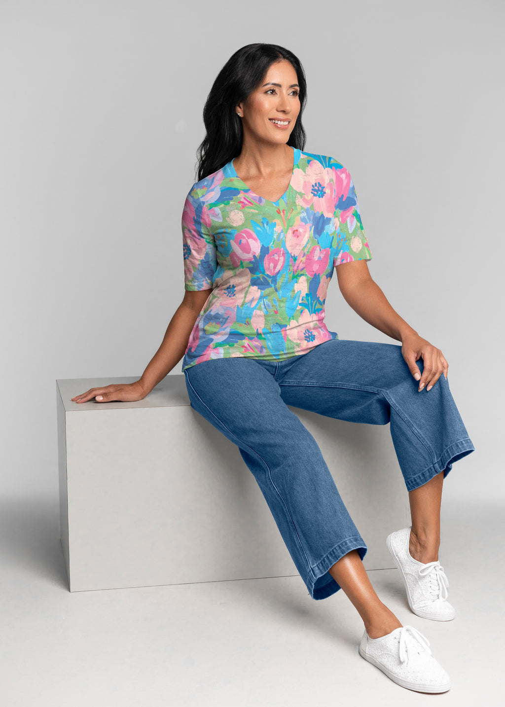 May Flowers (8027) ~ Signature Elbow Sleeve V-Neck Top
